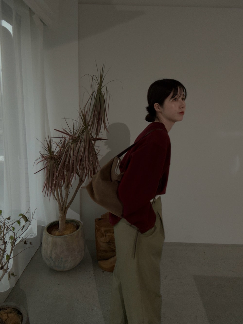 程よく柔らかい素材で、肩にかけたときに身体に馴染むワンショルダーバッグ。ストラップは調整可能なので、気分やスタイリングに合わせて長さを変えられます。一見コンパクトに見えますが、見た目以上の収納力があり、荷物が多い日のお出かけにも安心。シンプルながらも存在感があり、いつものコーディネートに程よい抜け感をプラスしてくれるアイテムです。