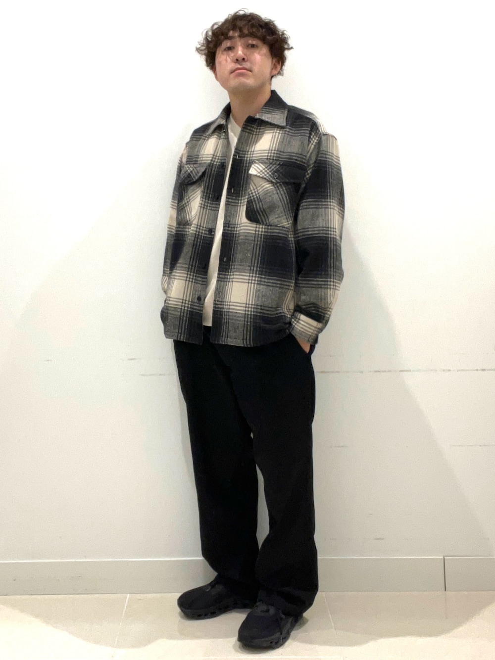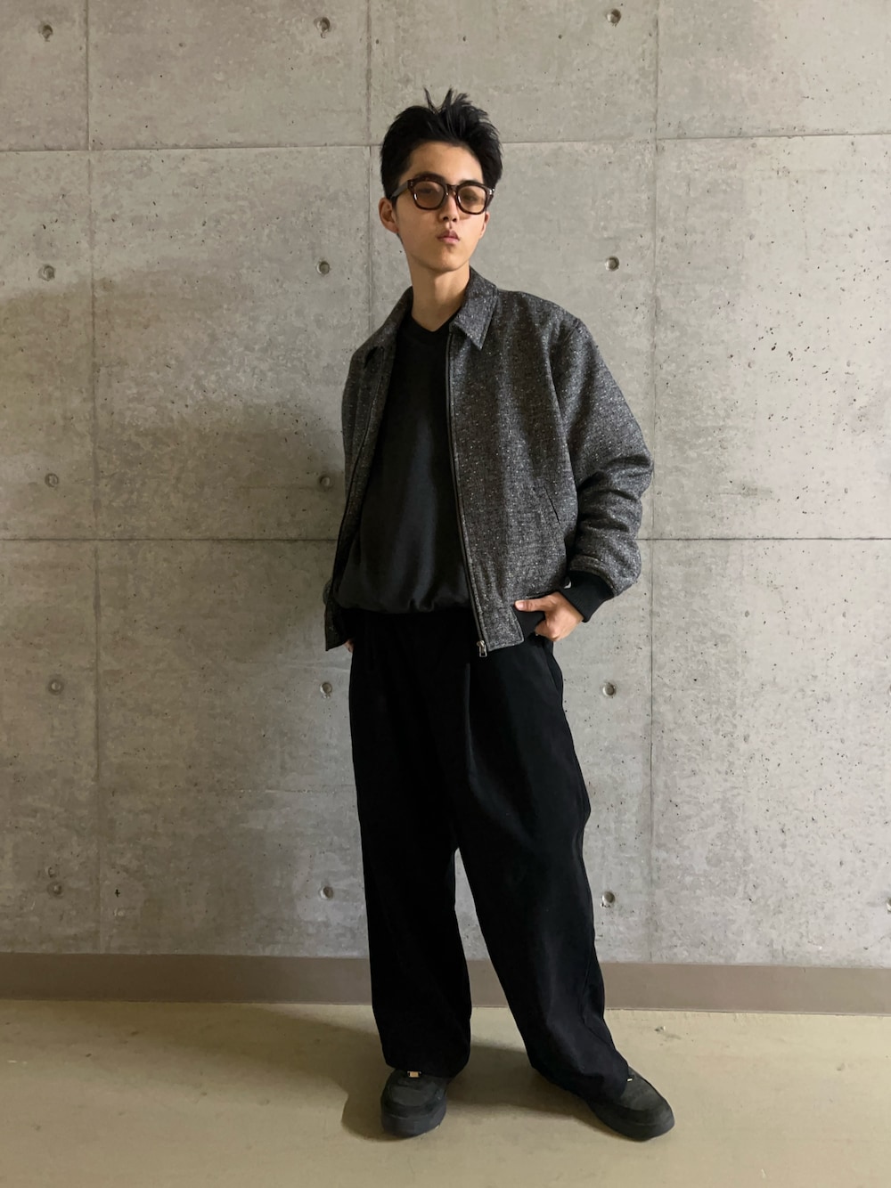 ウールライクなワイドパンツや、トレンドのパラシュートパンツと合わせた、リラックス感のある都会的なカジュアルスタイルがおすすめです。Vネックを活かしてインナーに白のクルーネックTシャツやモックネックを合わせたレイヤードスタイルも旬なテクニック。また、同素材感のヘリンボーン柄トラウザーと合わせれば、素材のコントラストが際立つ洗練された着こなしが完成します。