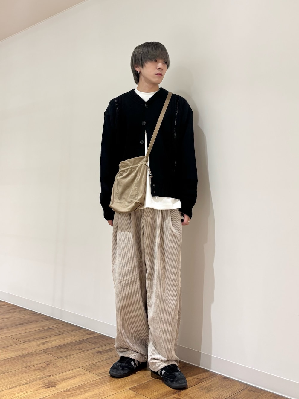 Tシャツやシャツの上に羽織りとして着用するのがおすすめです。きれいめなスラックスと合わせて上品に、デニムやチノパンツと合わせてカジュアルにと、幅広いテイストにマッチします。ボタンを閉めてトップスとして着こなすのも、クルーネックデザインですっきりと決まります。
