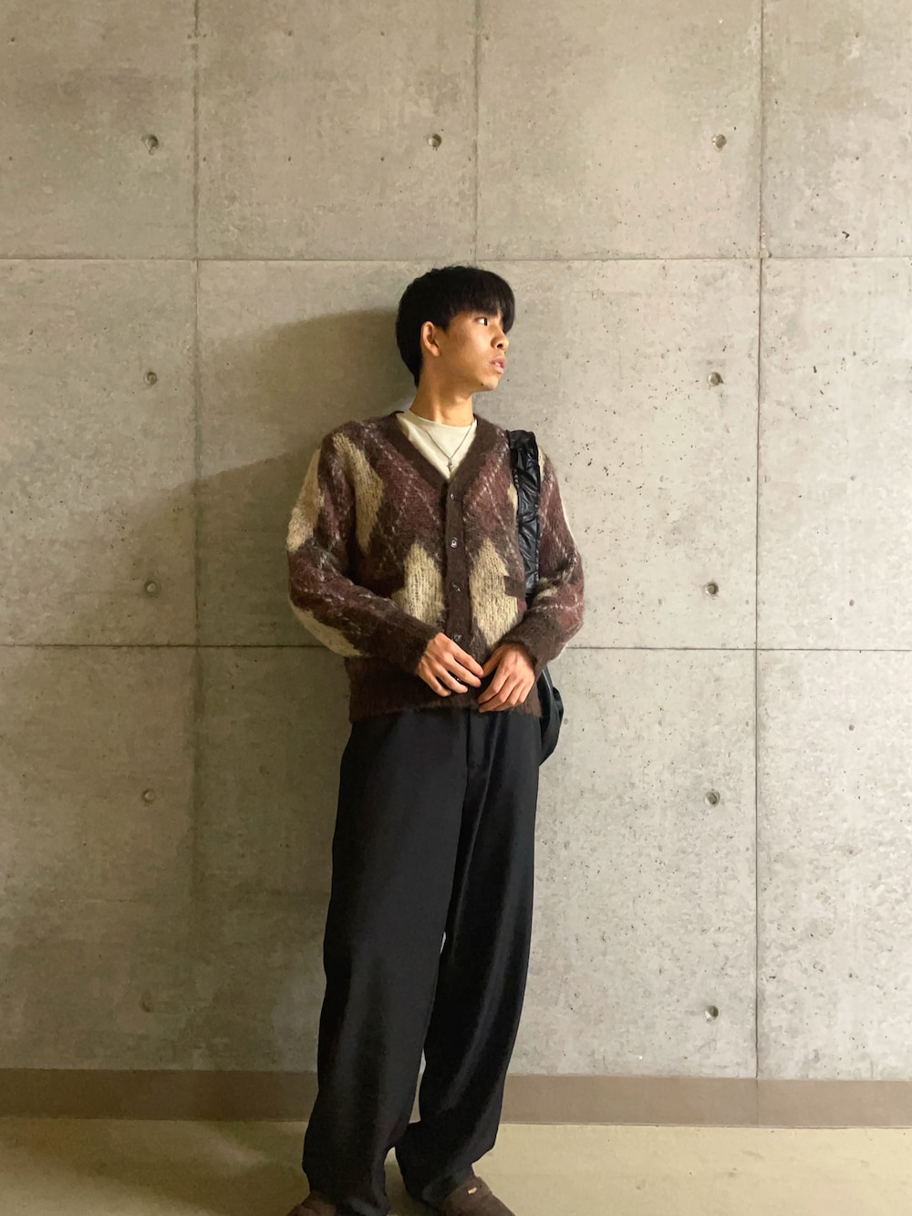 【旬を纏う。ふわふわ起毛とアーガイル柄で差をつける、ニットカーディガン】