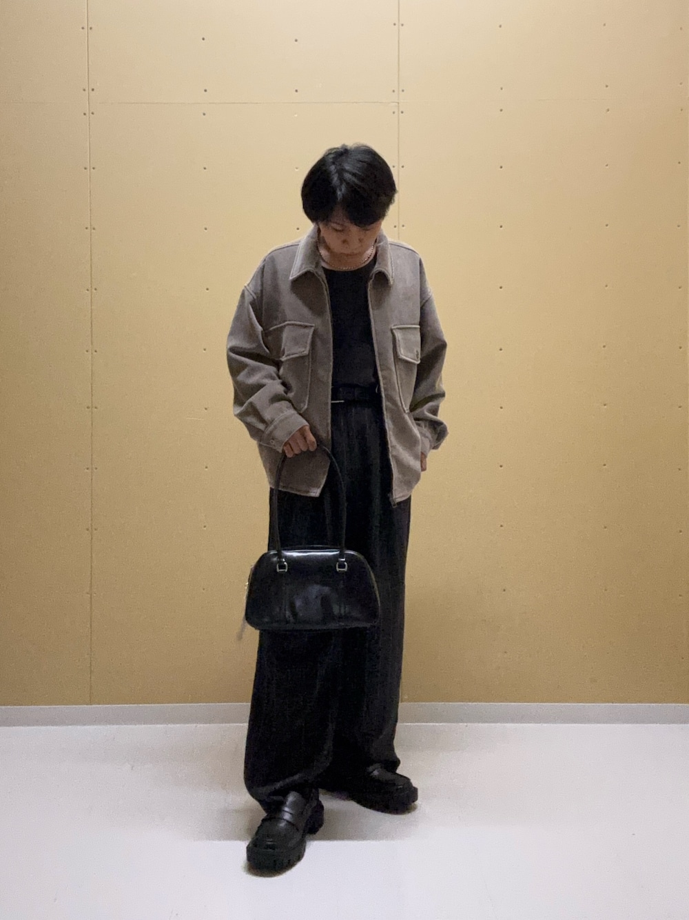 シンプルなニットやスウェットと合わせるだけで、パンツのシルエットと素材感が際立つ着こなしが完成します。同シリーズのウールタッチストライプバンドカラーシャツと合わせたセットアップスタイルは、それだけで洗練された雰囲気を演出できます。きれいめなジャケットと合わせれば、都会的な大人カジュアルスタイルに仕上がります。