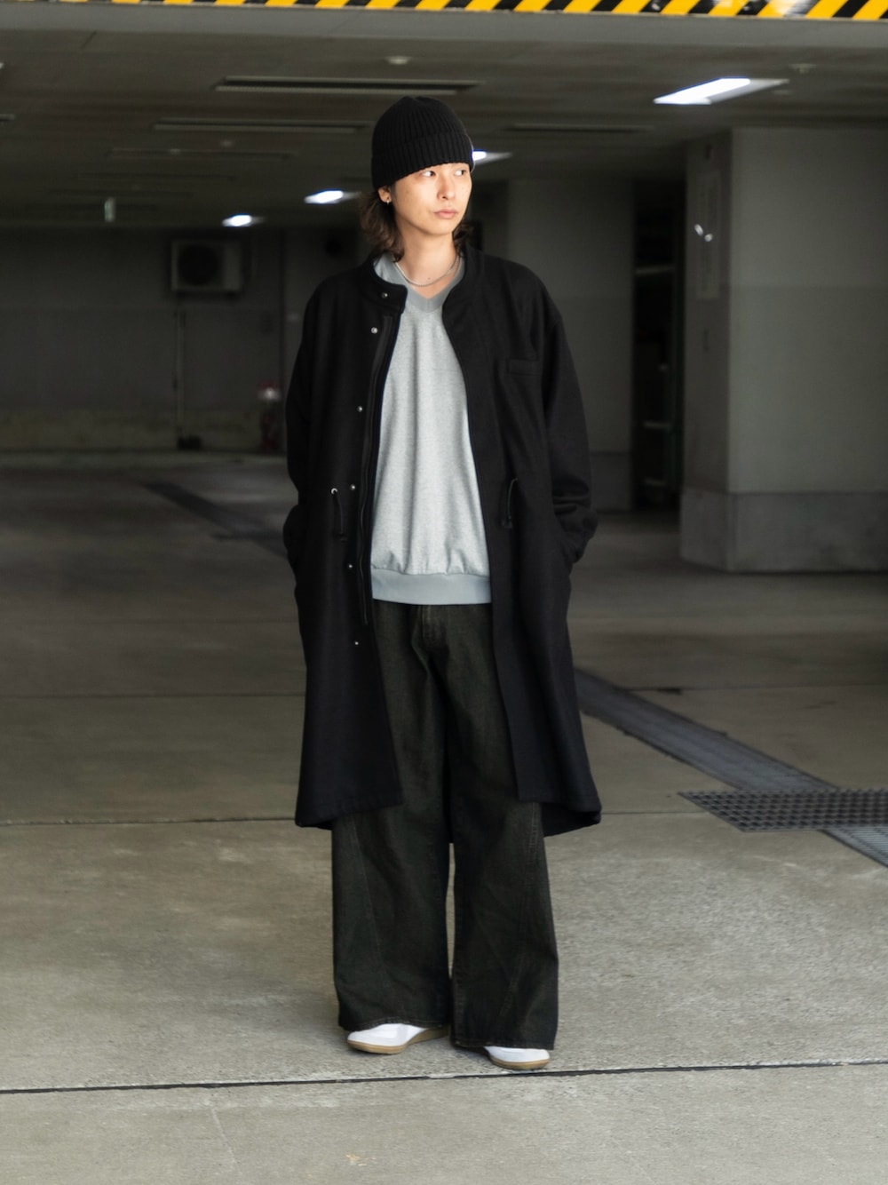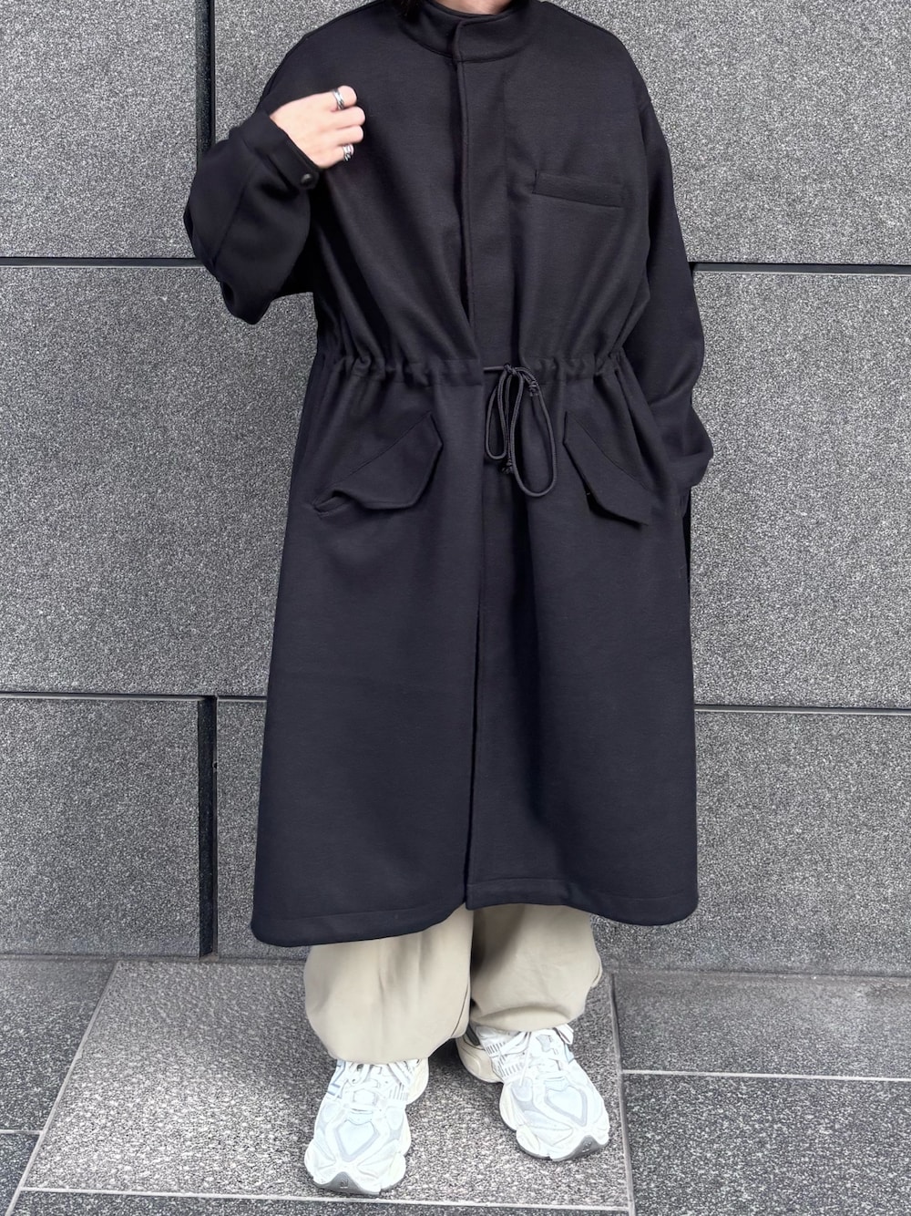 テーパードスラックスやウールパンツと合わせて、クリーンで洗練された大人カジュアルに。ウエストのドローコードを絞り、ワイドデニムやカーゴパンツと合わせることで、シルエットに変化をつけた旬なストリートミックススタイルが完成します。インナーはモックネックニットやパーカーで、首元にボリュームを出すレイヤードがおすすめです。