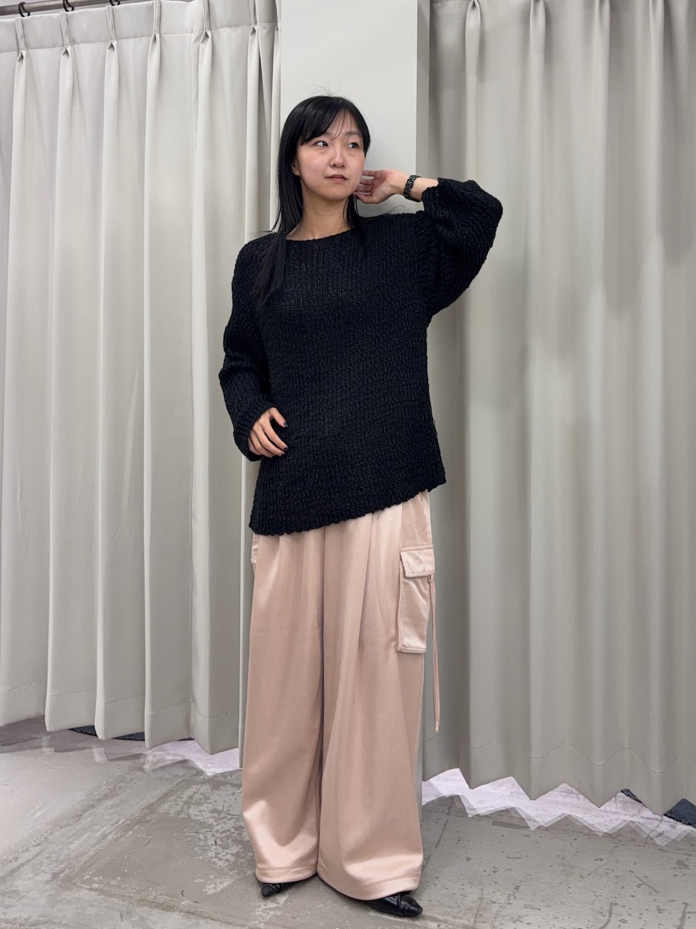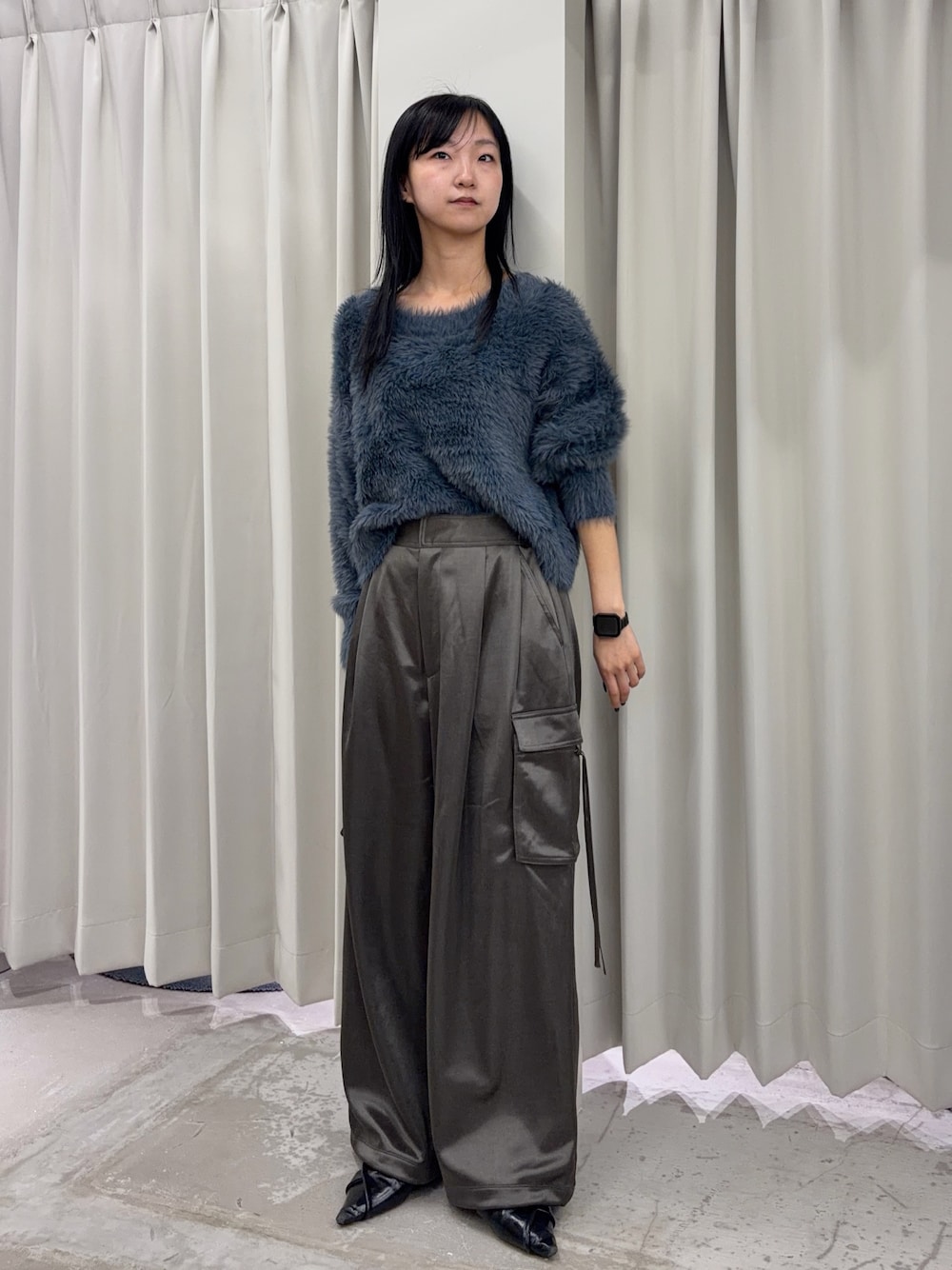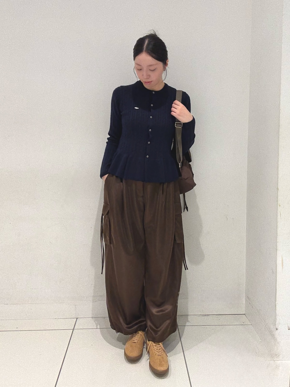 きれいめな光沢感のあるサテン素材を使用したカーゴパンツ。カジュアルな印象のカーゴポケットを配しながらも、上品なサテン素材を使用することで、洗練された印象に仕上げました。ゆったりとしたシルエットで、リラックス感のある履き心地も魅力。シンプルなニットやブラウスと合わせるだけで、トレンド感のあるスタイルが完成します。