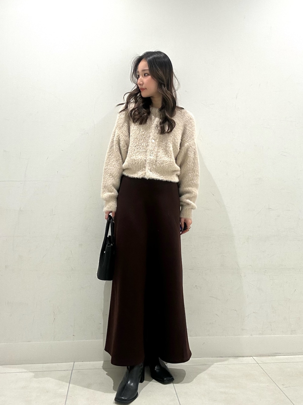 上品なぬくもりを感じさせる素材を使用したロングスカート。計算された美しいAラインシルエットが、身体のラインを拾いすぎず、スタイルアップを叶えます。ウエスト周りもすっきりと見えるデザインなので、トップスをインした着こなしもきれいに決まるのが魅力。秋冬の着こなしに洗練された印象をプラスする一枚です。