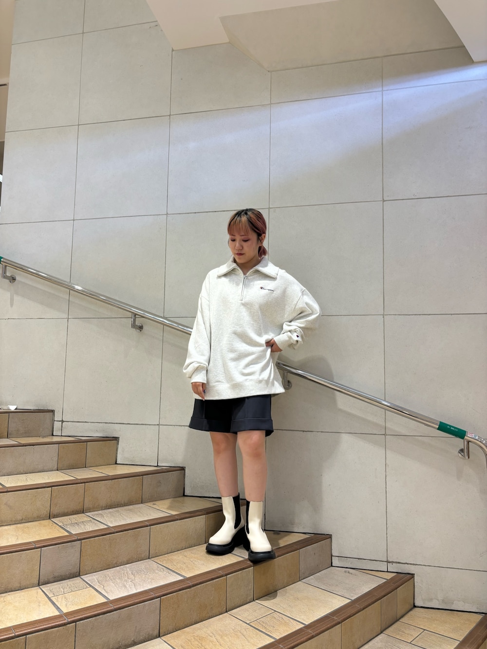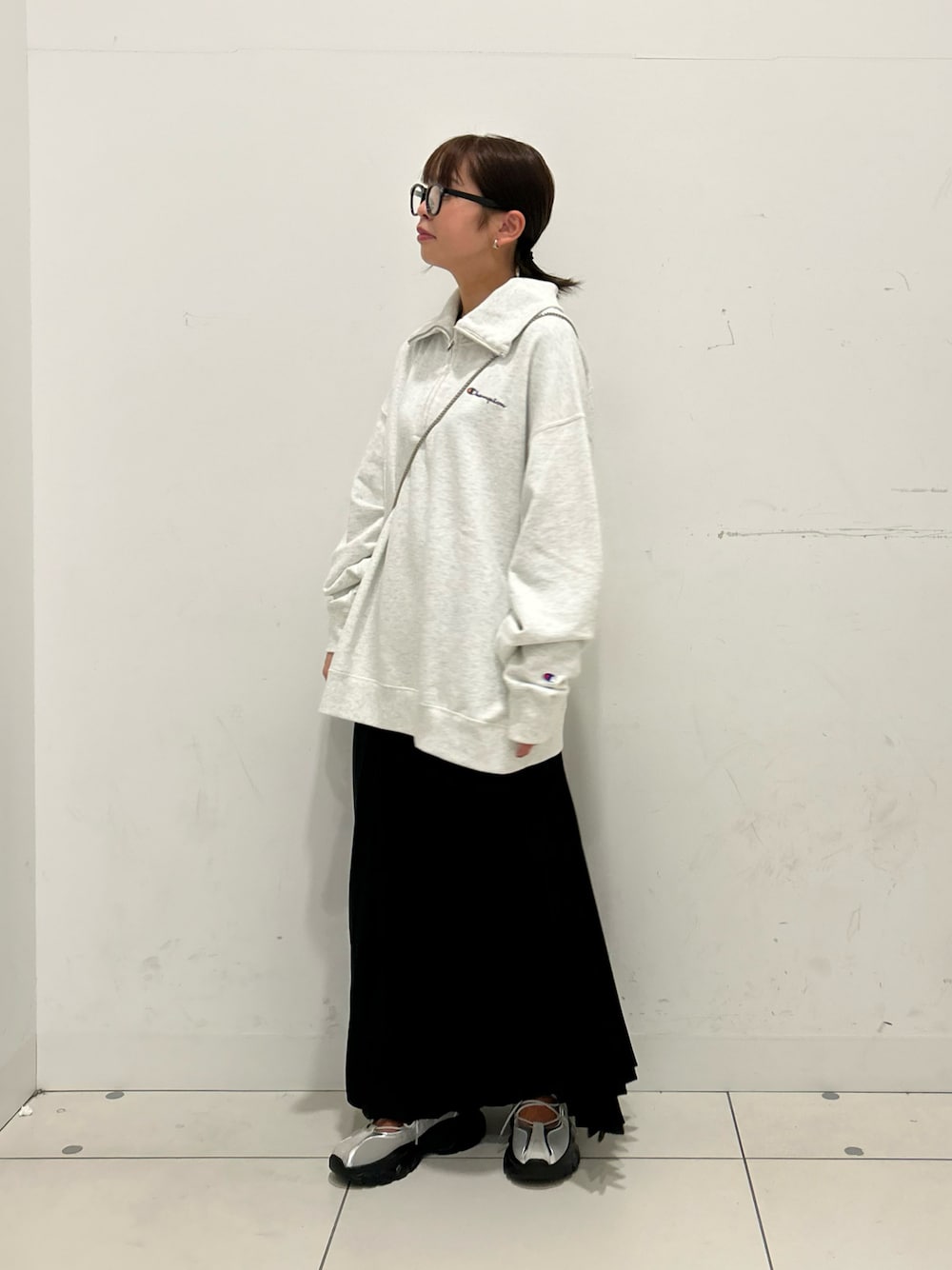 ゆったりめのサイズ感で一枚でも、寒い時期は中にカットソーやニットを着込むのもおすすめ!引き続きトレンドのハーフジップは高さをプラスしバージョンUP!折り返すと大きめの襟がかわいいデザインに◎ボディカラーによって胸元の刺繍カラーが異なるのもおすすめポイントです◎