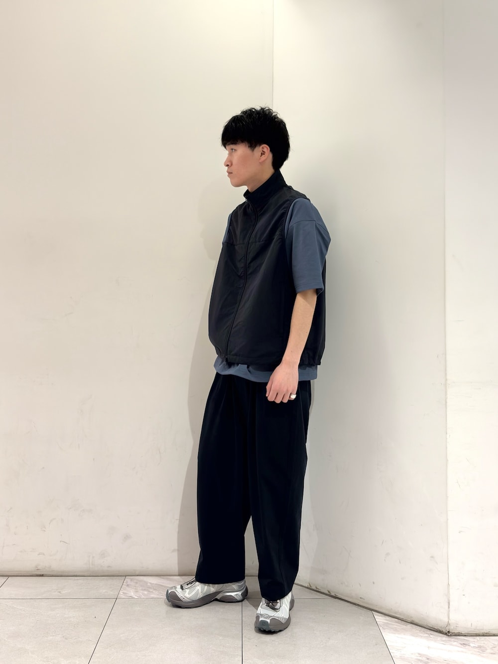 薄手のテック生地を使ったトップスで春から初夏の汗ばむ時期に快適に着用できます。