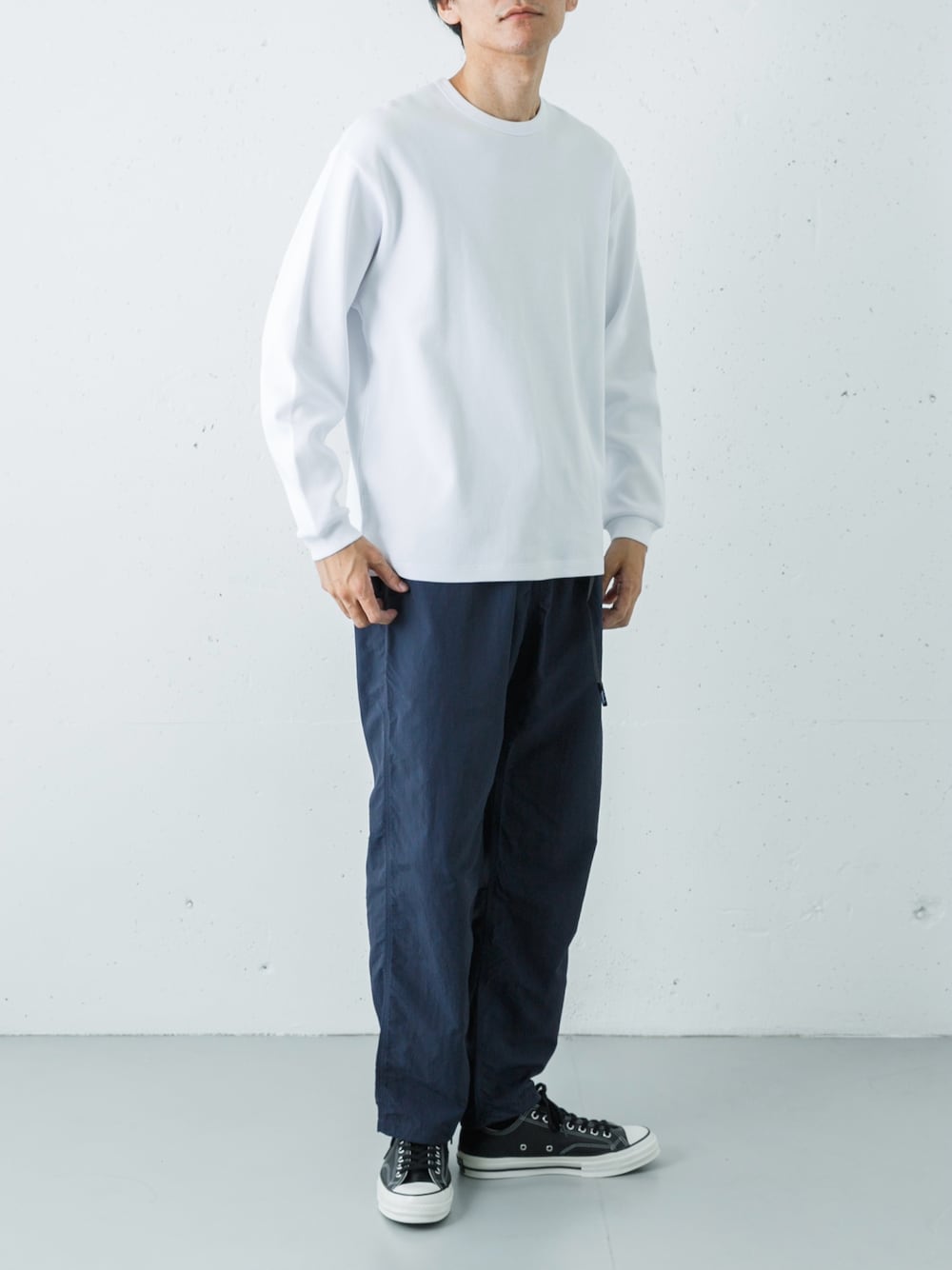 シンプルでやや細身の作りで、大人が穿けるナイロンパンツをコンセプトにしています。
