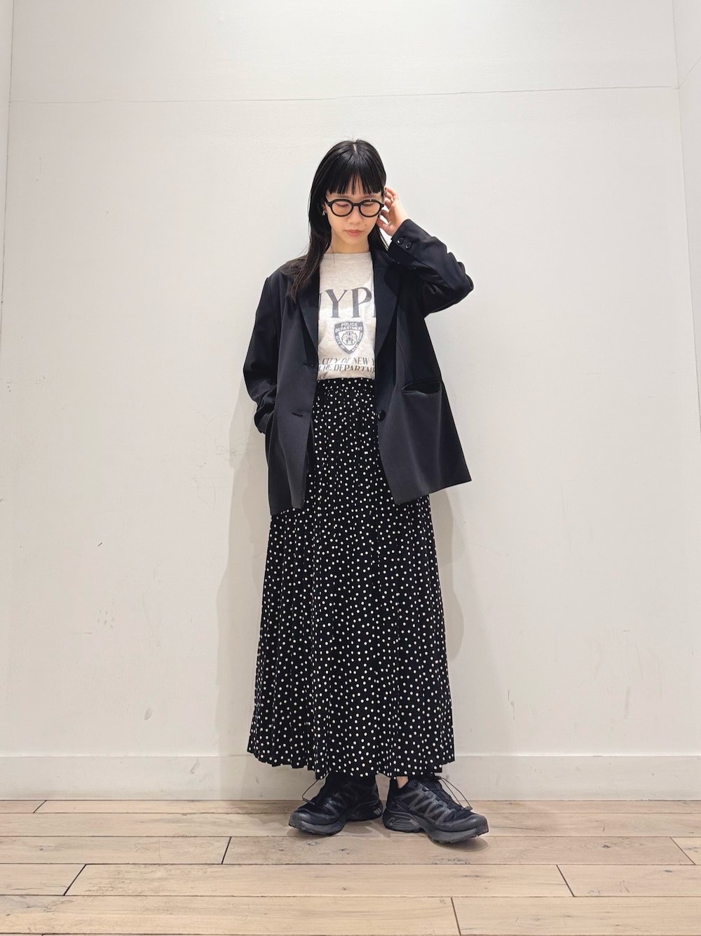 カジュアルなスタイルにはもちろん、ワンピースやスカートの外しにもおすすめ。