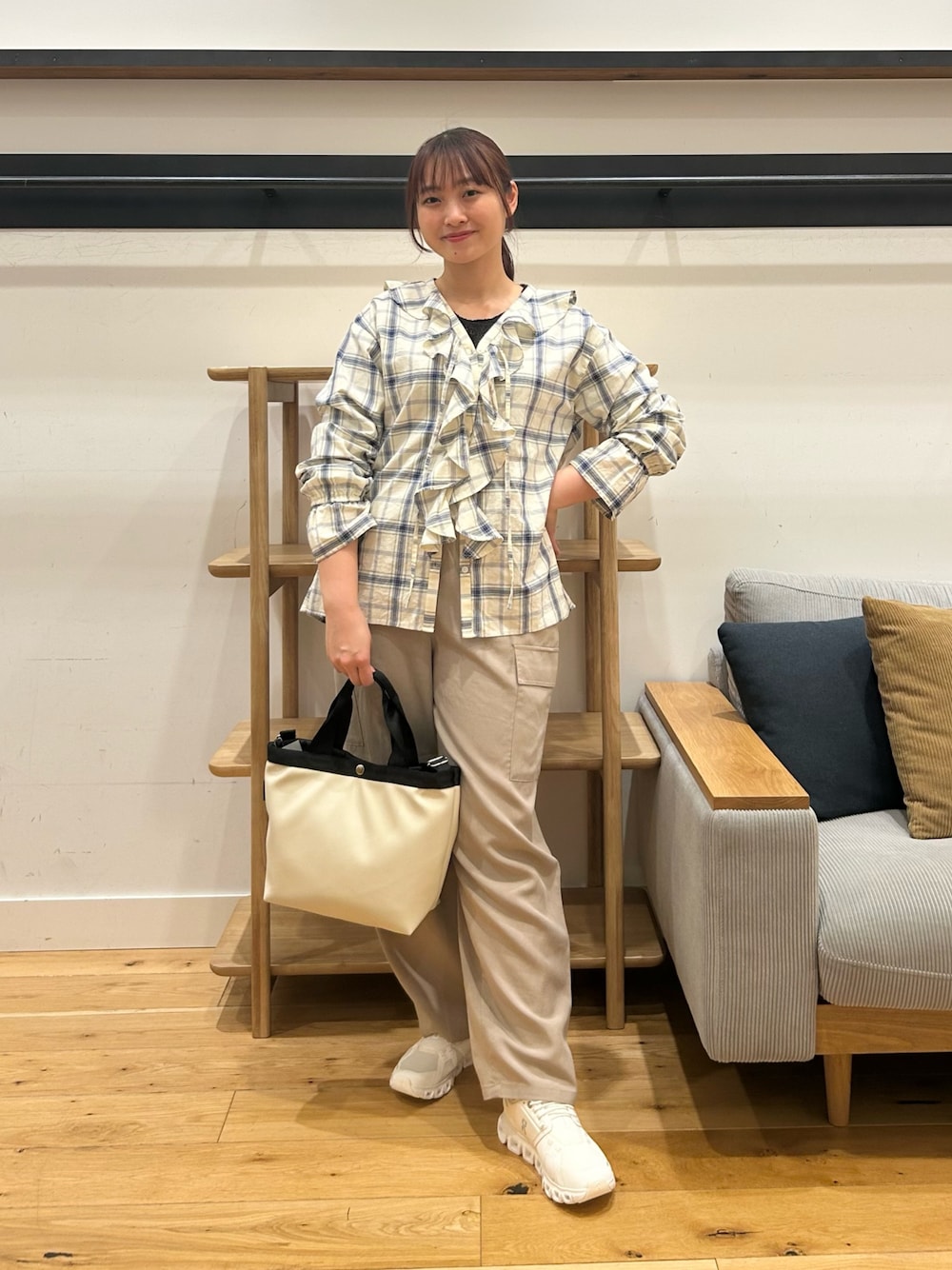 ショルダーの紐を細めにしており、カジュアル過ぎずキレイめのスタイルにも合わせやすいデザインに仕上げました。