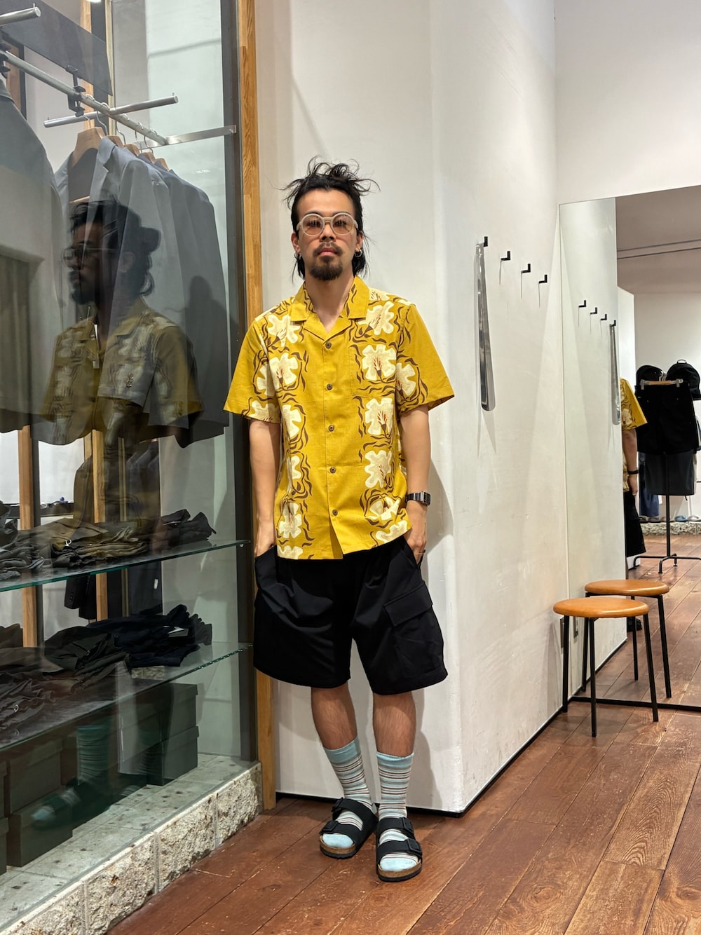 ナチュラルな色合いと落ち着いた柄はデニムやショーツと合わせてリラックスした着こなしに馴染みます。