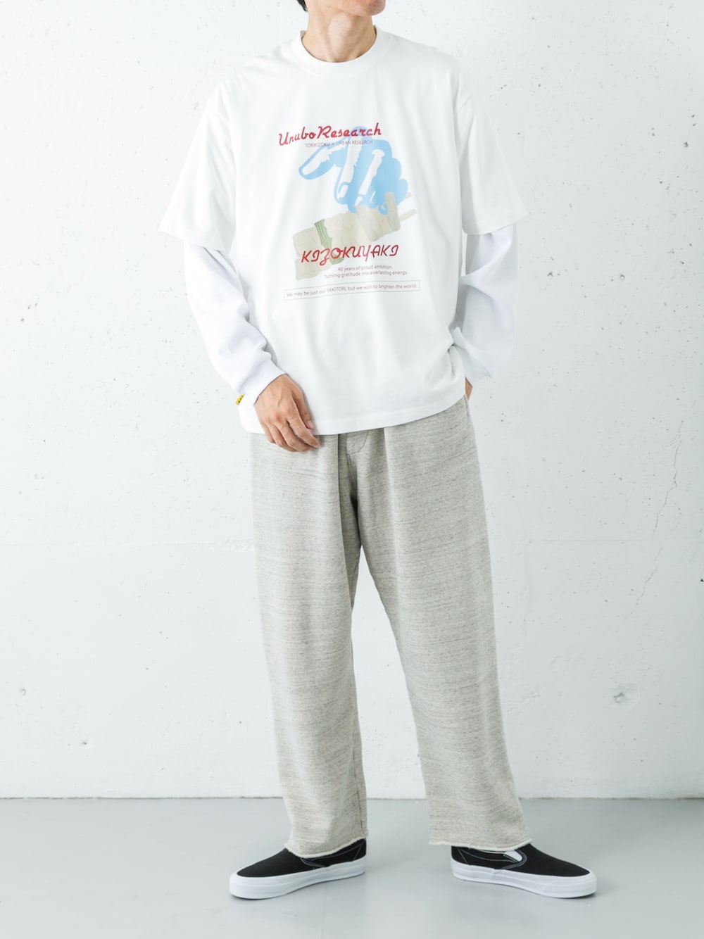 このコラボレーションでは、既存のブランドアイデンティティを超えた「UnuboResearch(ウヌボリサーチ)」という架空ブランドを創造し、服と焼鳥が交わる描き下ろしのグラフィックを、TシャツやロンT、スウェットに落とし込みました。