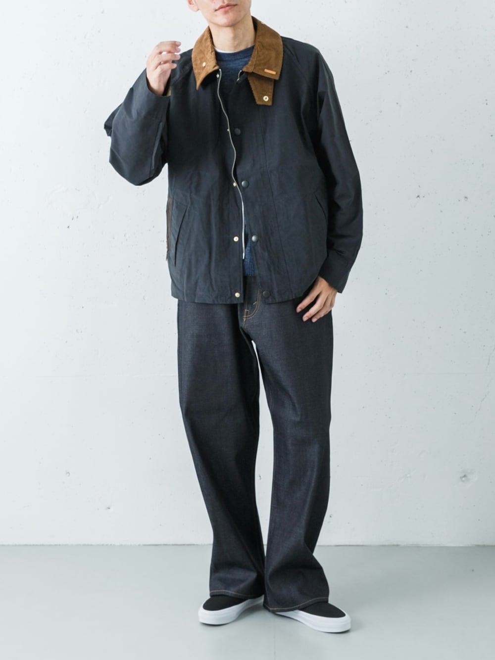 程よい短丈とゆったりした身幅で春の羽織りにぴったりなカジュアルジャケットです。コーデュロイの襟やチェックのライニングなどブランドらしいディテールが程よいアクセントになり、フロントのスナップやジップポケットで扱いやすさも確保しています。