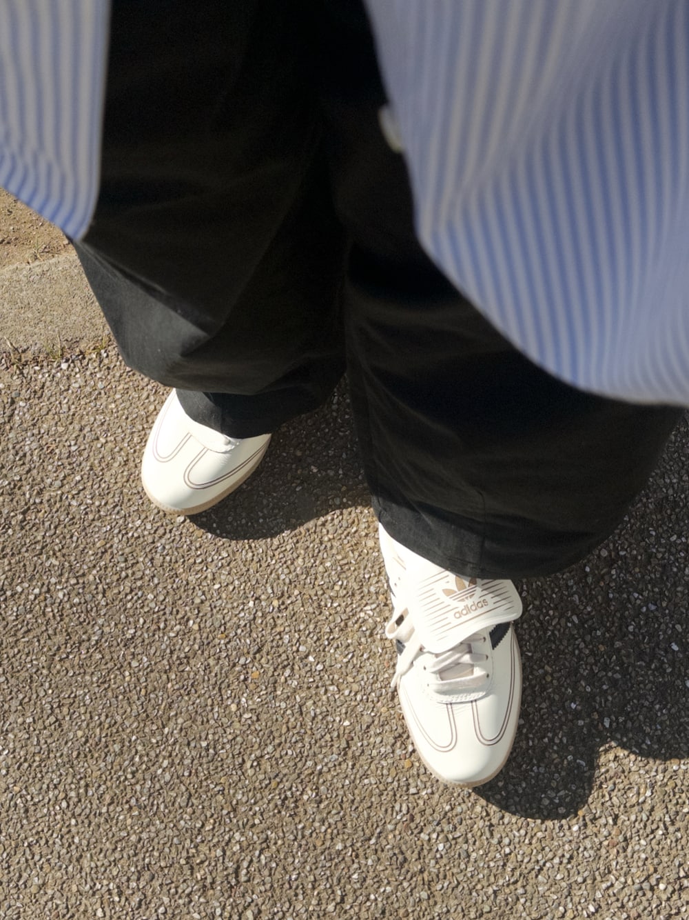 シュータンには、トレフォイルロゴとスリーストライプスが刻まれ、レトロスポーティーな雰囲気を強調しています。