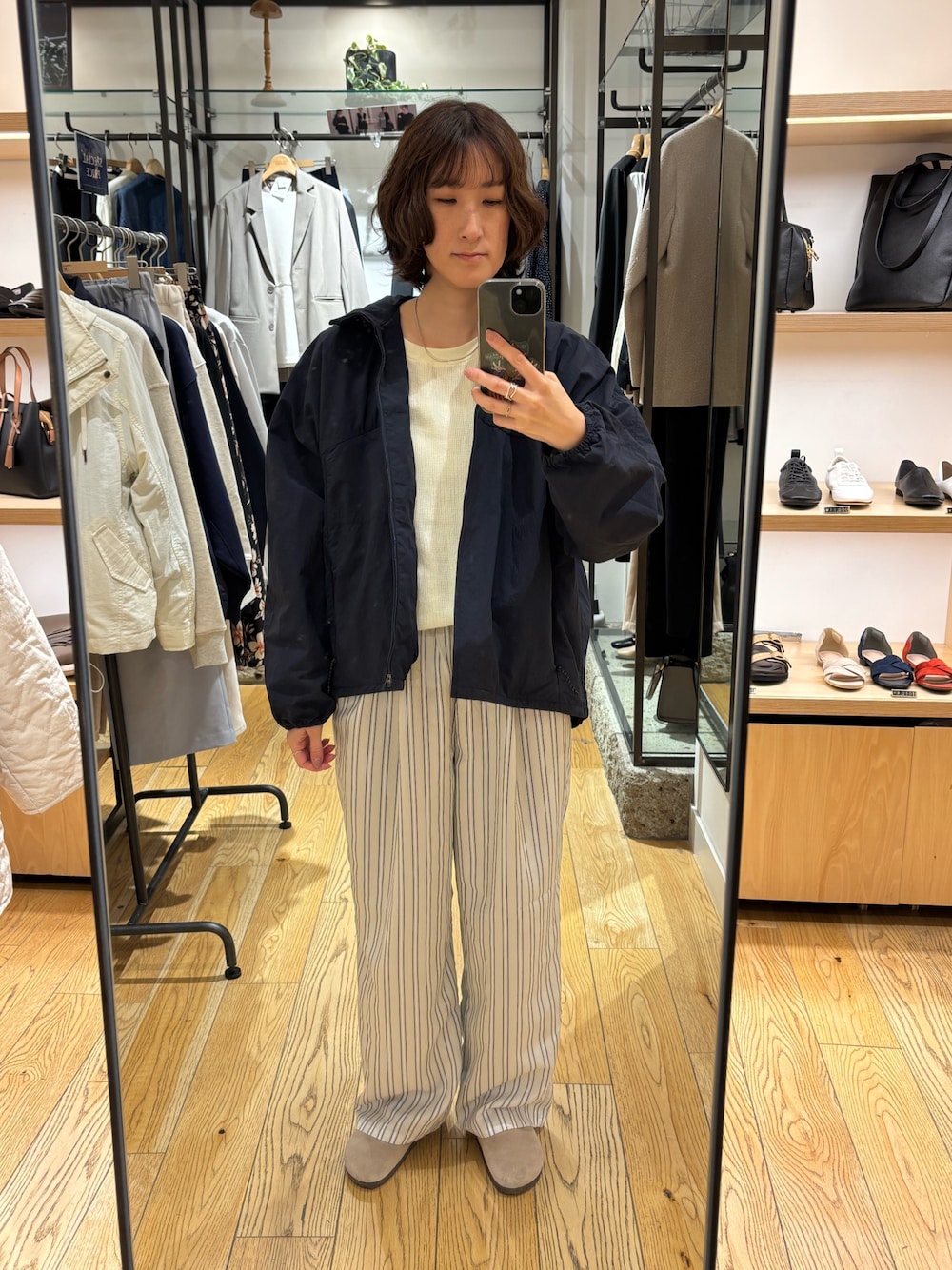 シンプルながらも落ち感のある生地感と計算されたゆるめのシルエットでこなれた雰囲気を醸し立ちます。