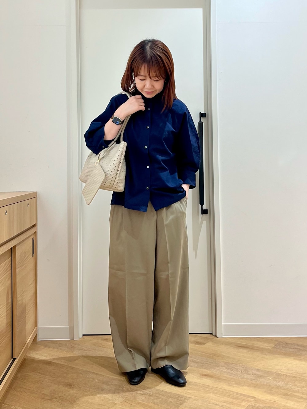 ゆったりとしたサイズ感で抜け感を出しながらも落ち感のある生地を使用しているのですっきりとした印象に◎