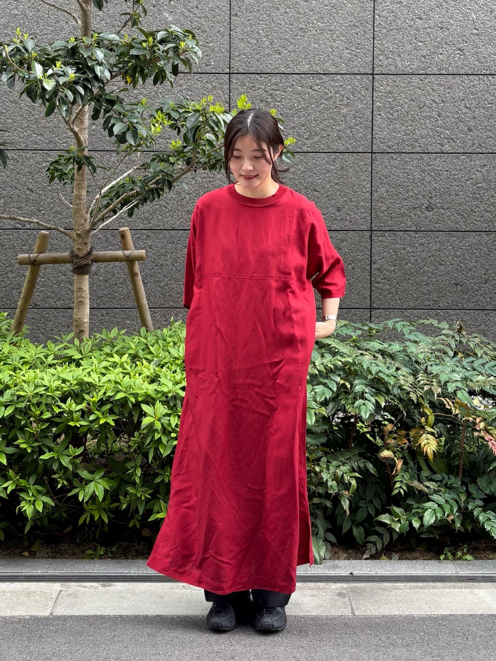 オンオフ兼用で着られる布帛素材を使用しており、リネン特有の節とセルロースの落ち感を活かした風合いが、シンプルながらも雰囲気のあるナチュラルな印象を与えつつ、カジュアルにも活躍する見た目が完成。