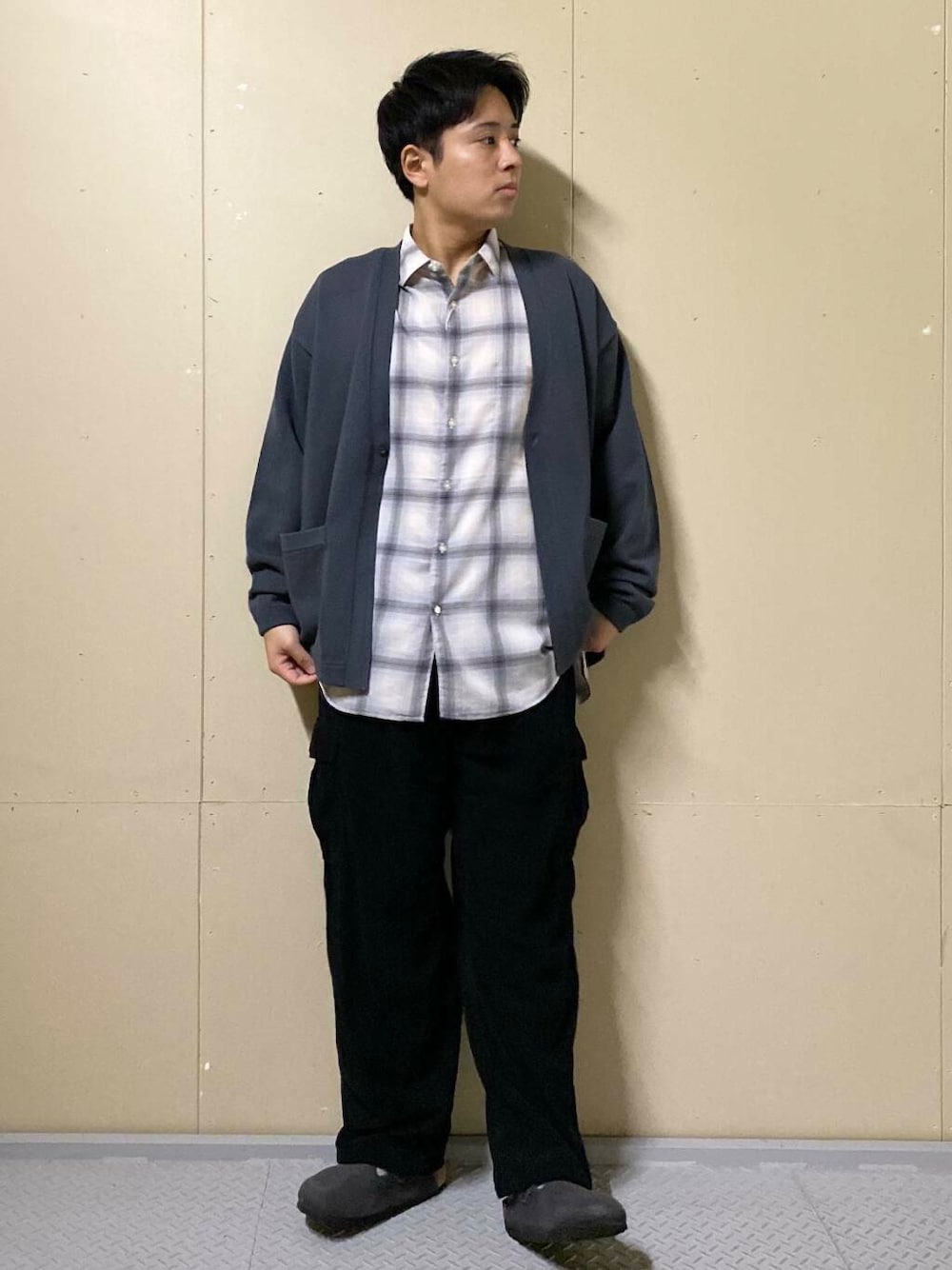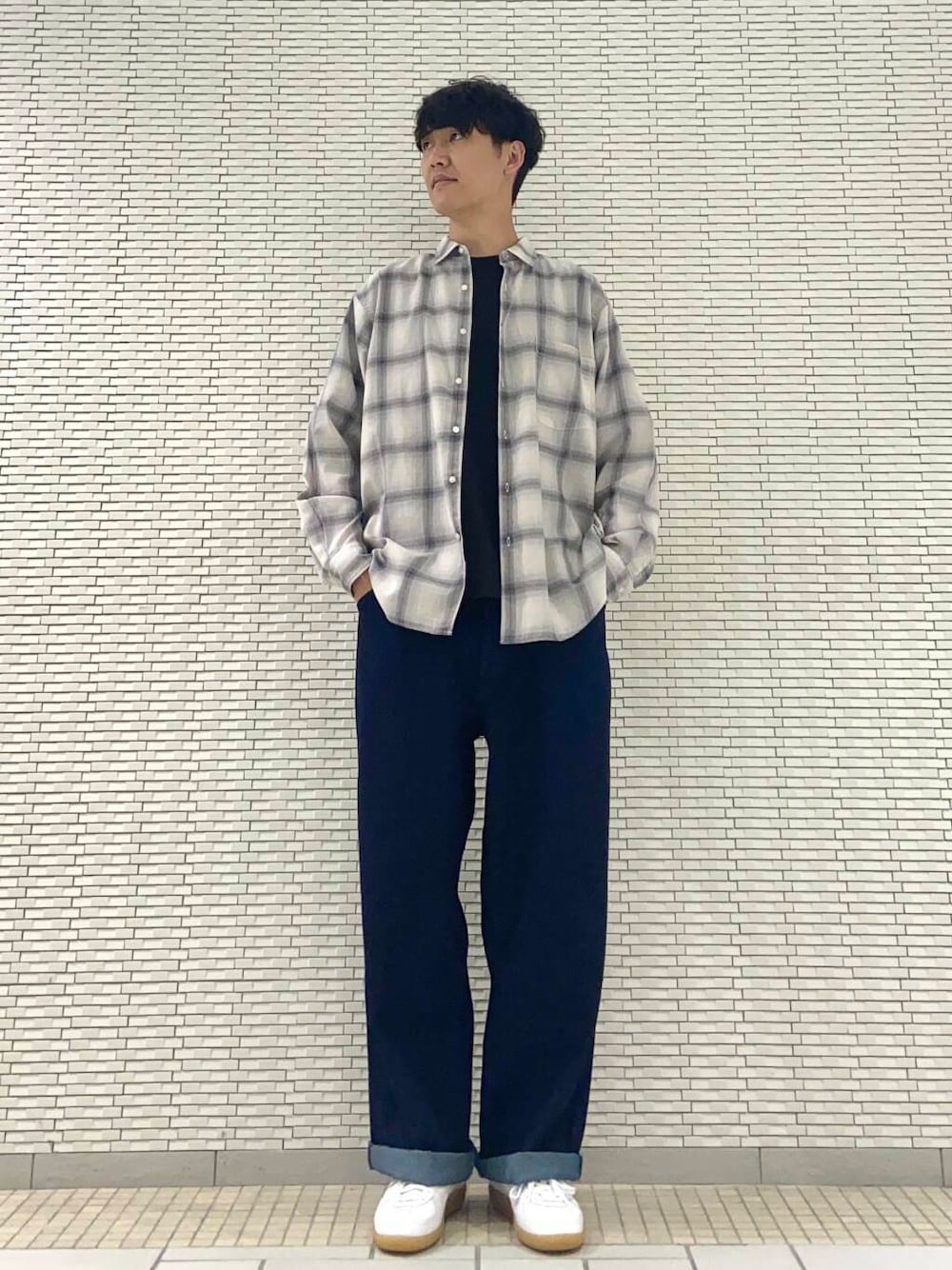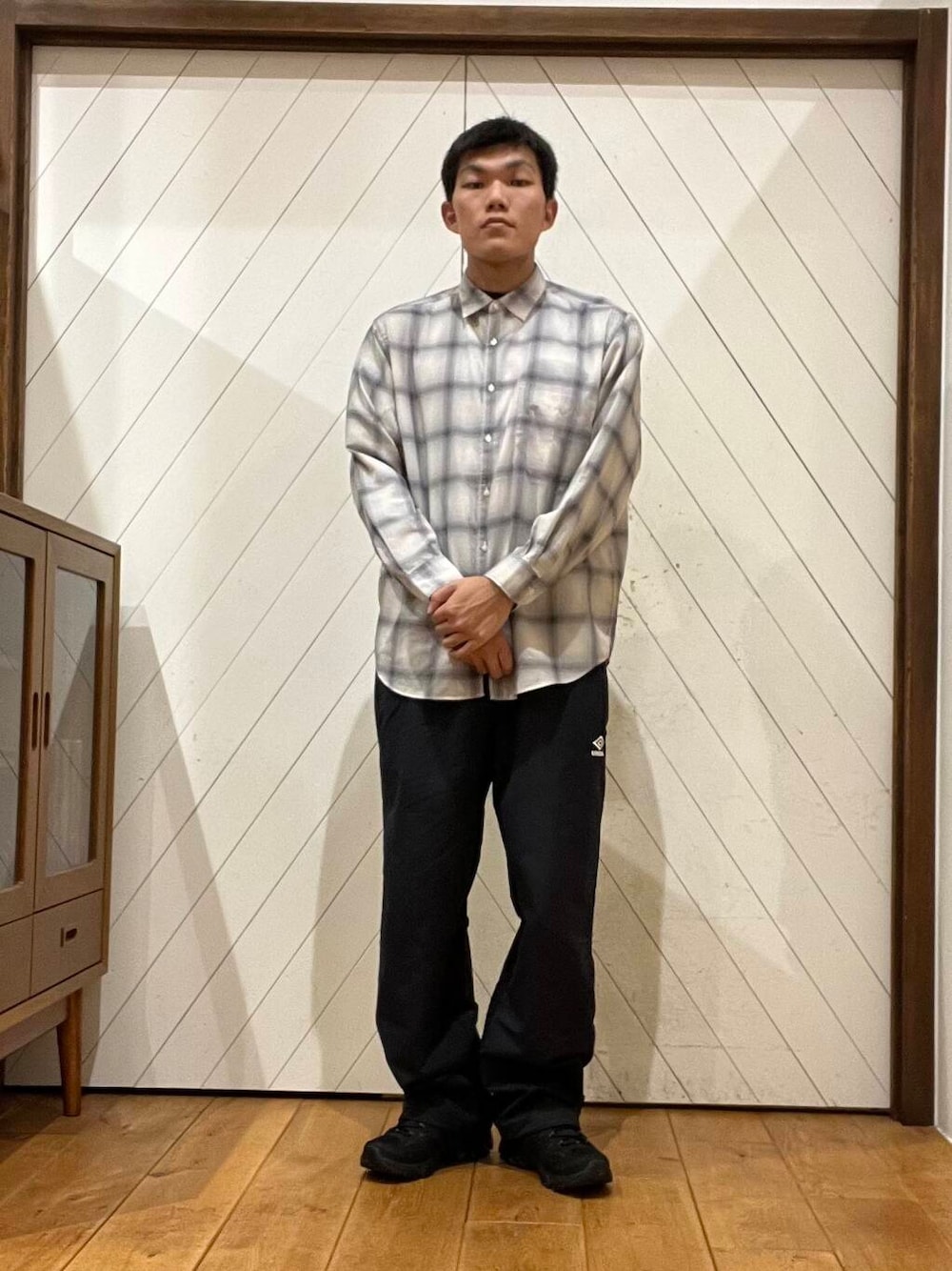 これからの季節を漂わせるチェックシャツをワントーンで大人カジュアルな印象でご用意。
