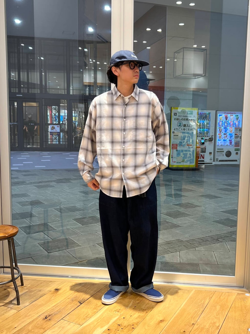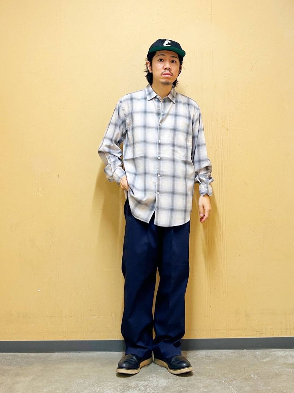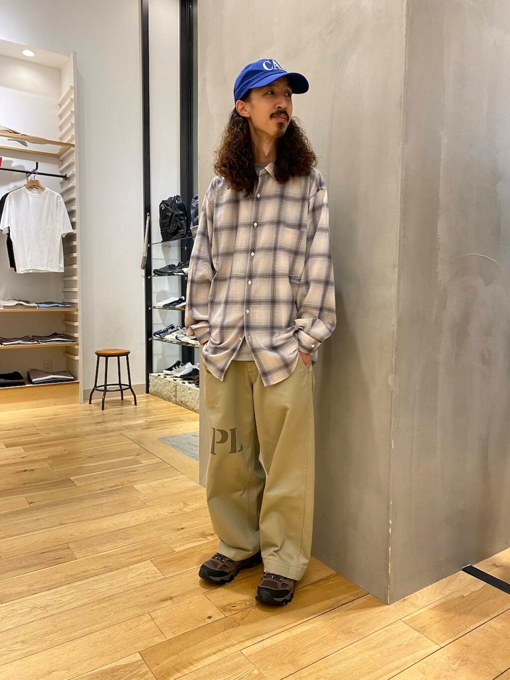 これからの季節を漂わせるチェックシャツをワントーンで大人カジュアルな印象でご用意。