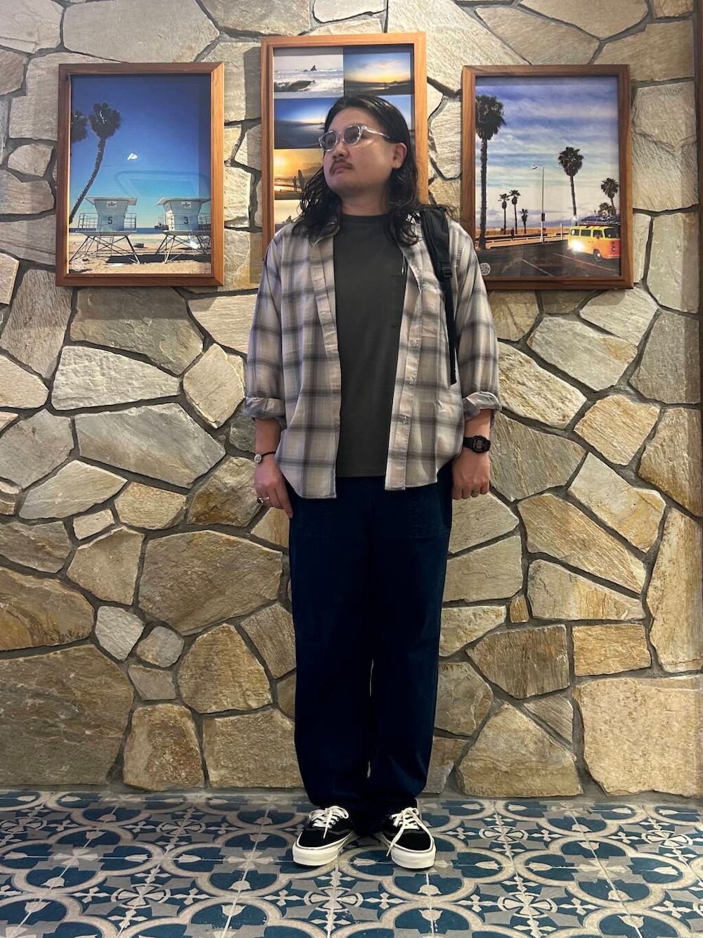 これからの季節を漂わせるチェックシャツをワントーンで大人カジュアルな印象でご用意。