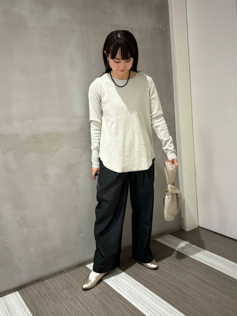 程よい光沢が強く見えすぎないので上品な印象で着られ、手洗いできるのでアフターケアにも富んでます。