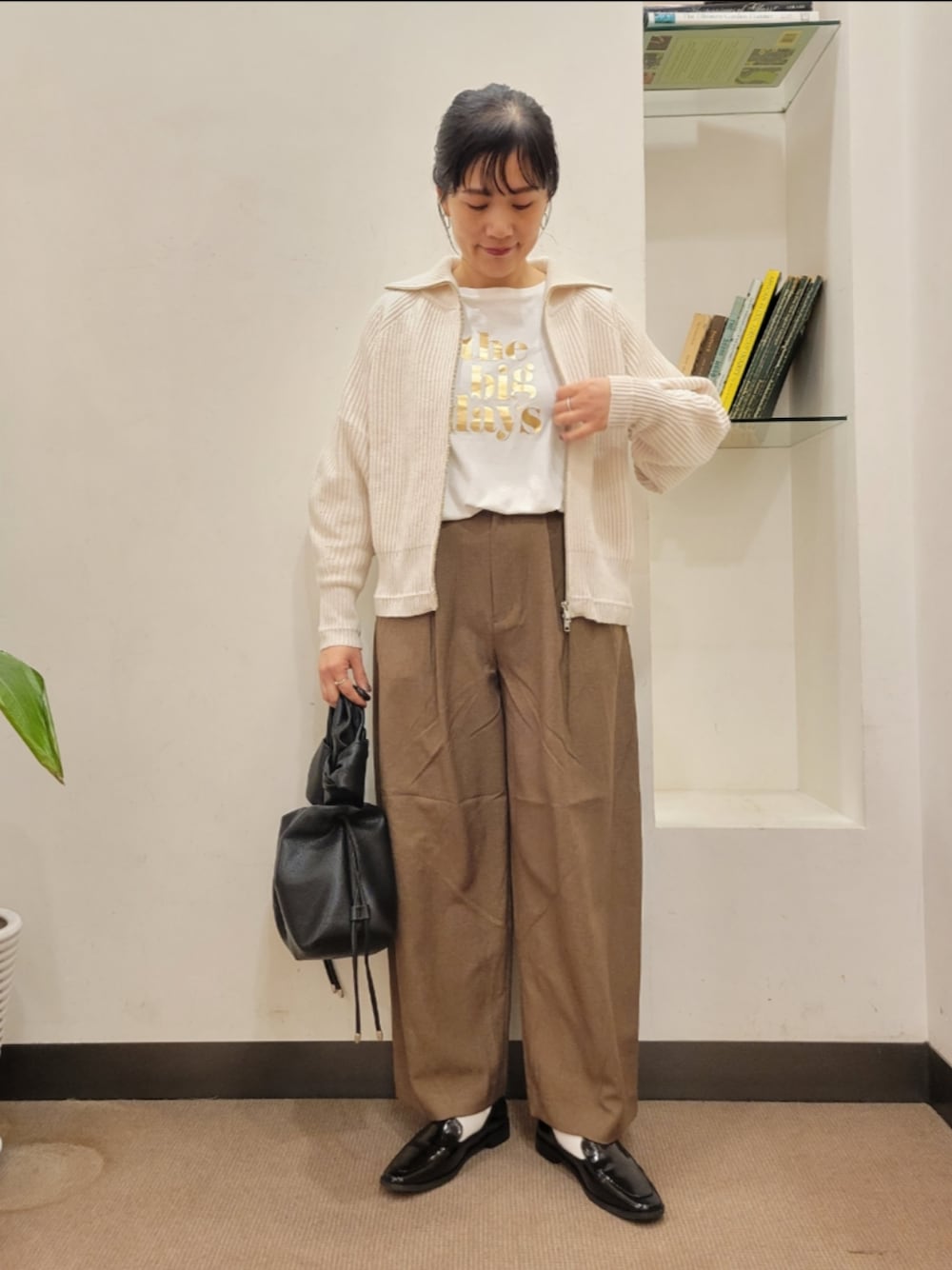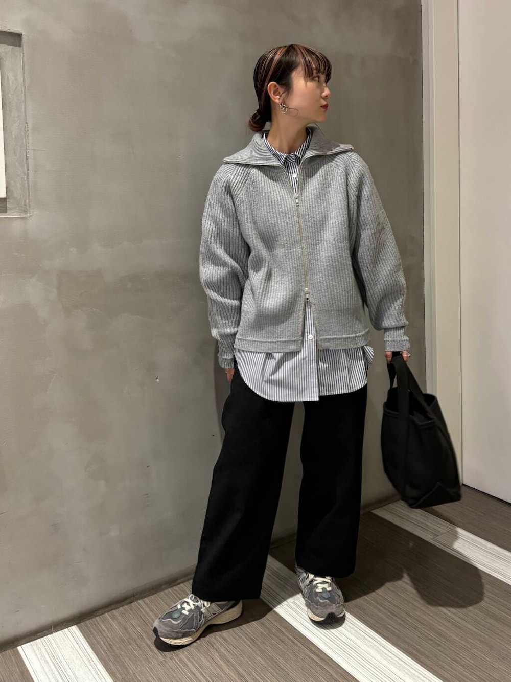 ジップで閉めれる仕様がよりラフな印象を与え、サイズにゆとりを持たせることで抜け感をプラスします。