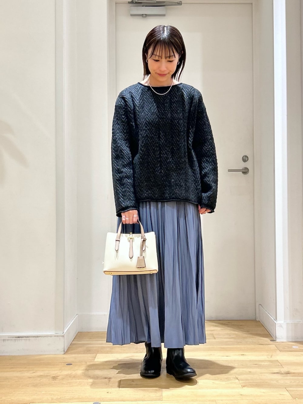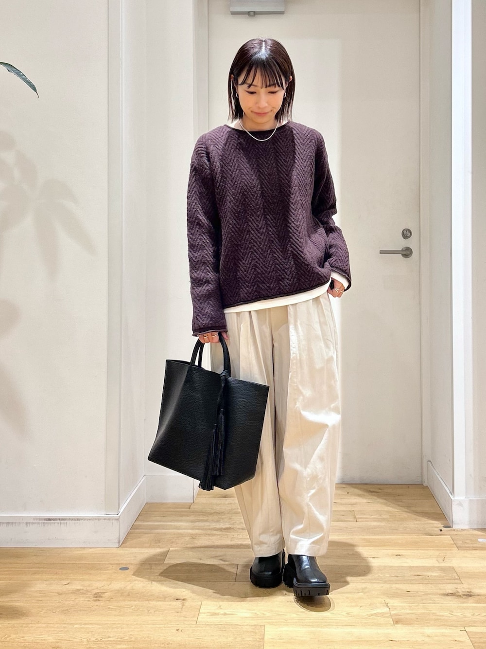 ボートネックが女性らしさを惹きたて、中にインナーやシャツを重ねたレイヤードスタイルも楽しんでいただけます。