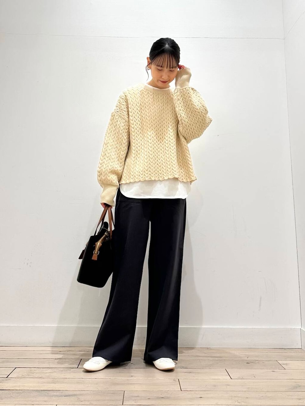 ポリエステル100%なので洗濯、アフターケアもしやすく今から通年活躍する程よい厚手の生地を使用し、どことなく品も兼ね備えた優秀なボトムです。