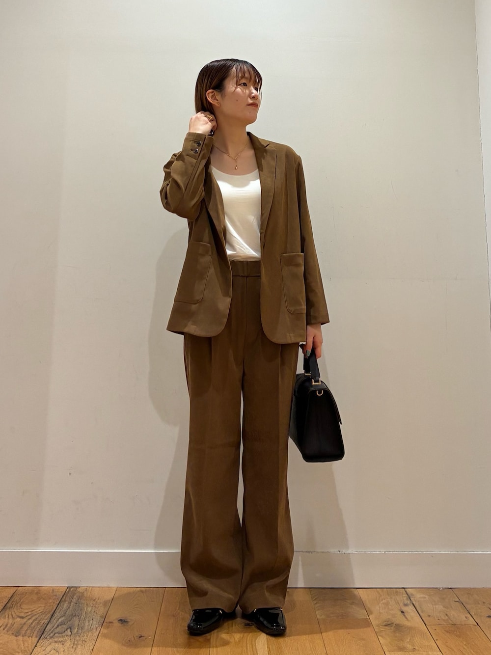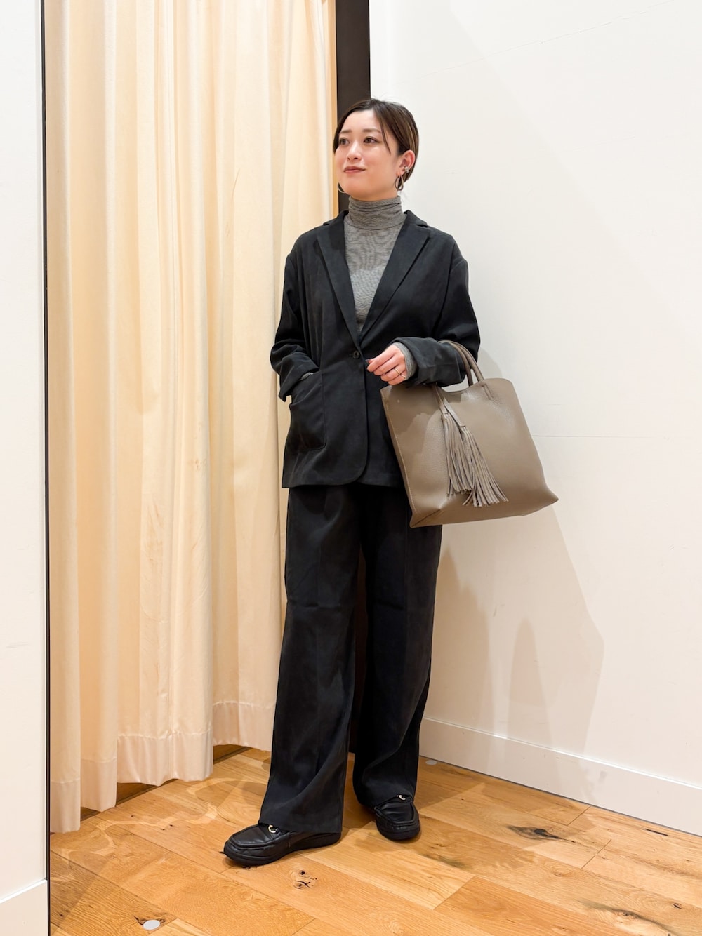 ソフトタッチで優しい手触りのスウェードライクな生地は、程よくストレッチ性も兼ね備えておりカジュアルながらも上品さもプラスします。