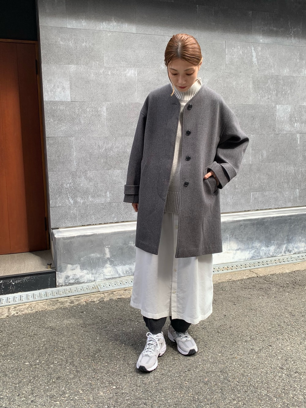 ニュアンスのあるウール糸を使用したナチュラルな風合いに丸みのあるボリュームシルエットが、存在感のある一着です。