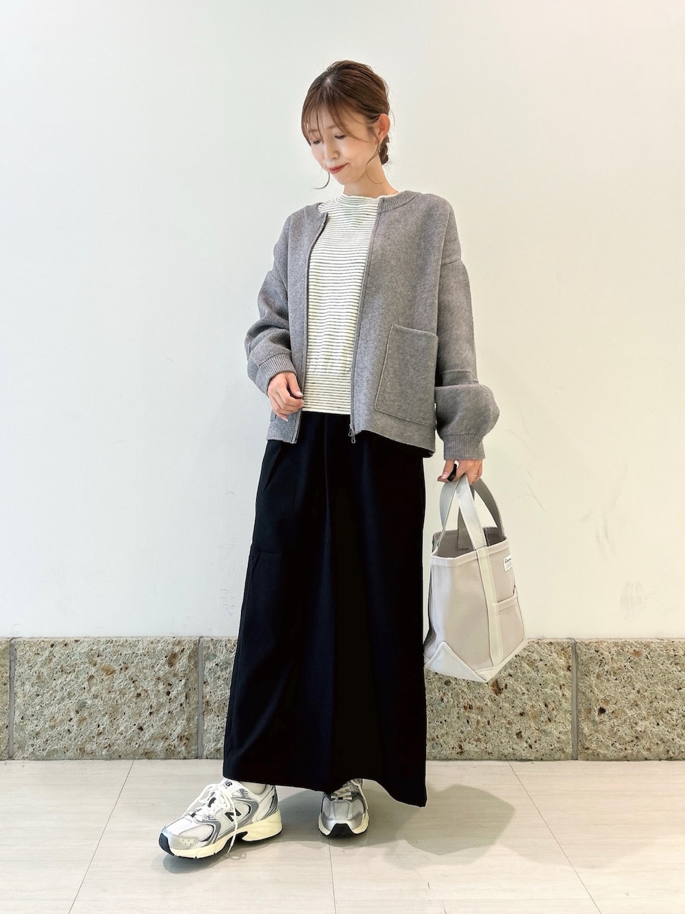 長すぎない着丈がワイドパンツやスカートにもマッチします。