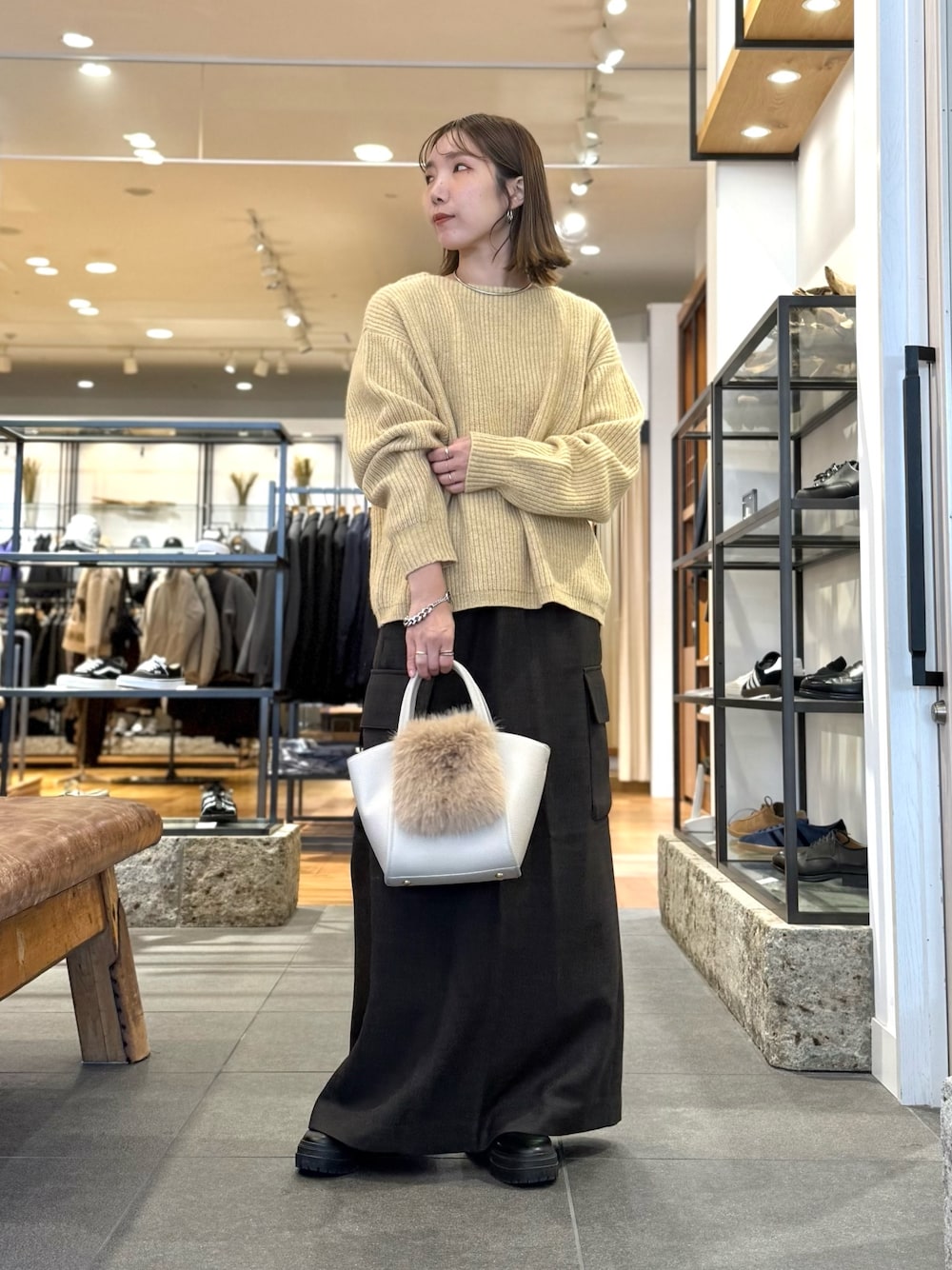 ニットやスウェットなどのボリュームのあるものと合わせてももたつかず、カジュアルやナチュラルなテイストにはもちろん、ブラウスと合わせると一気にきれい目な雰囲気にアップデート。