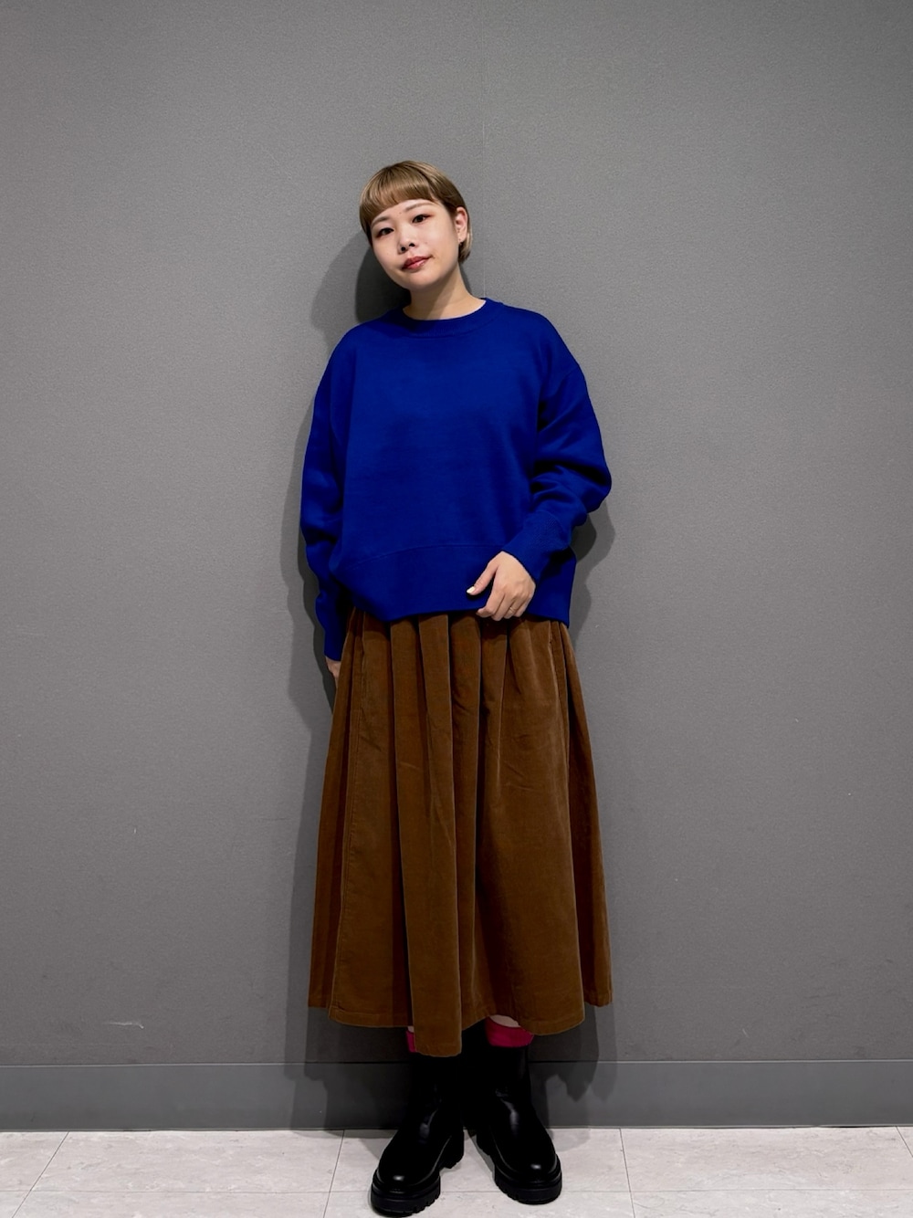 暖かみを感じるコーデュロイを使用したスカートは今から先取りコーデに取り入れやすく、もちろん冷え込む季節に重宝すること間違い無し。