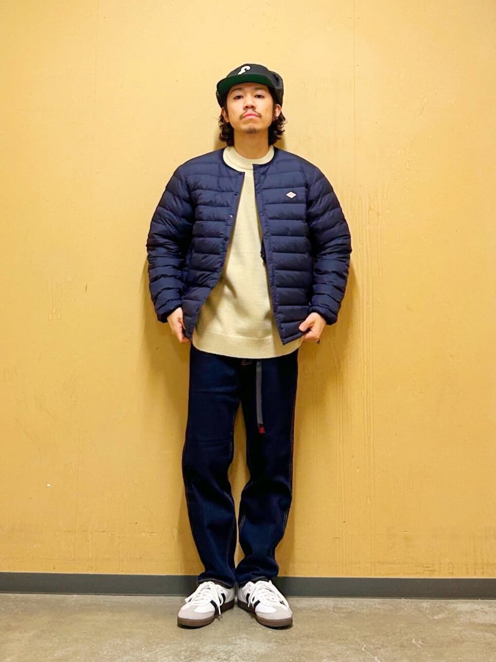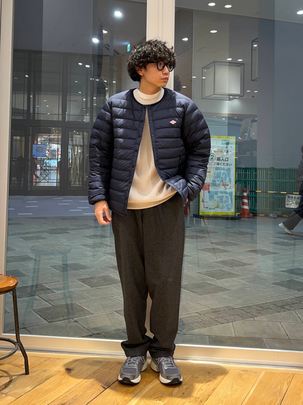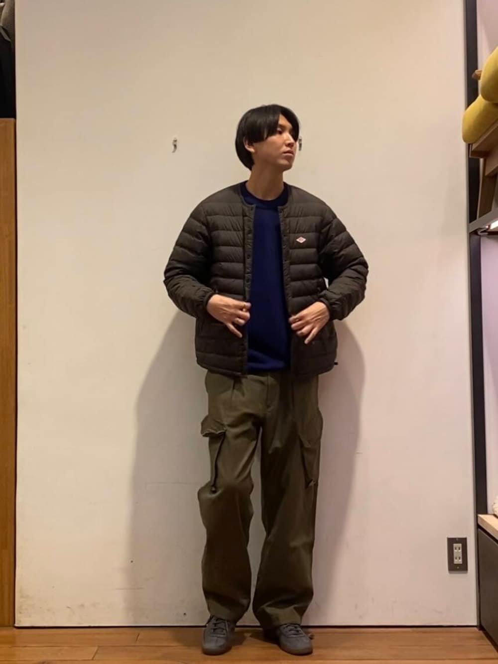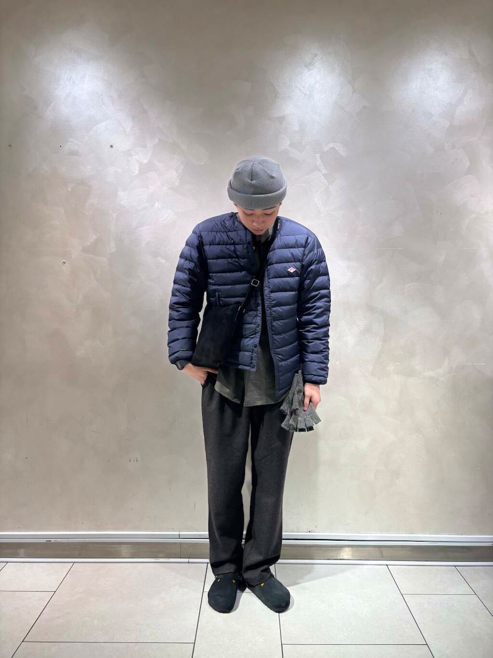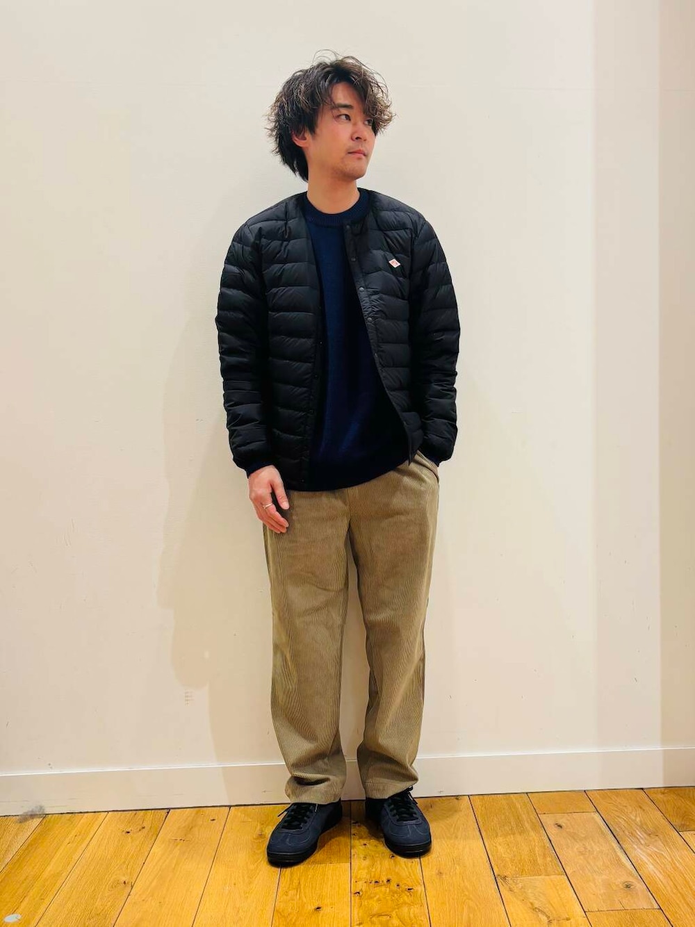 クルーネックのインナーダウンジャケット