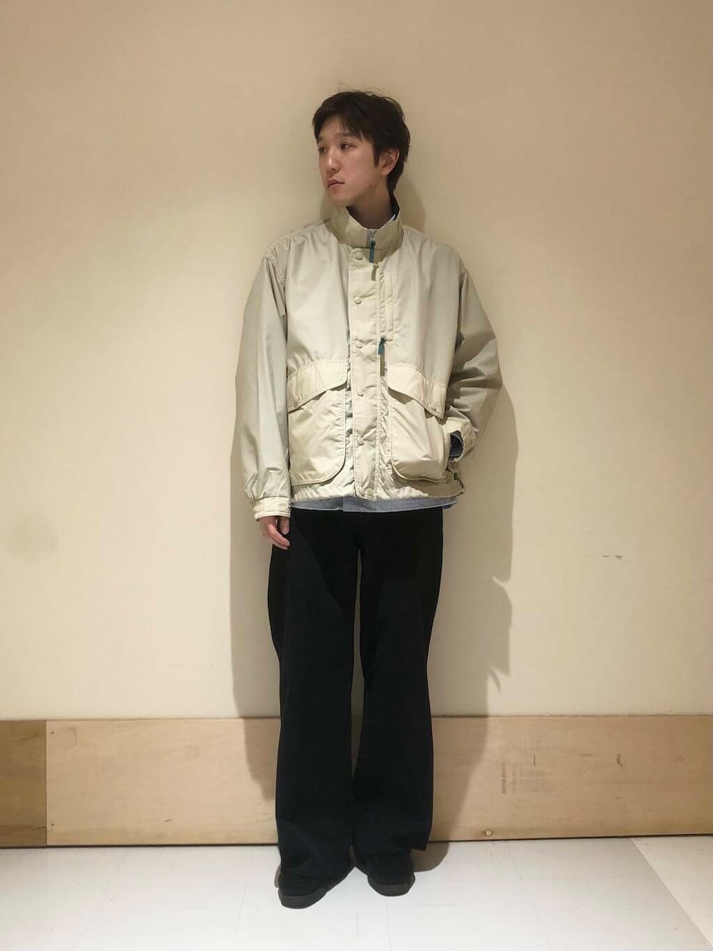 短めに設定された着丈はボトムを選ばずすっきりとしたシルエットが特徴です。