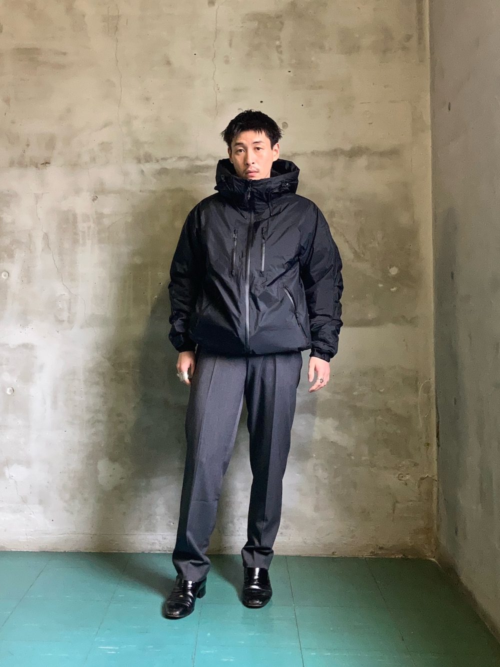・フードにはスピンドルをあしらい、顔周りの冷気を防止