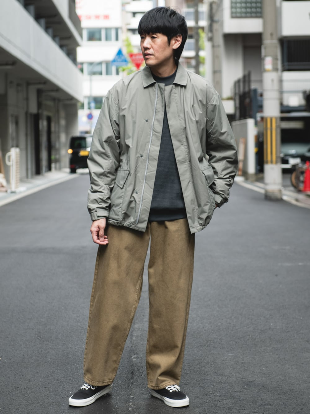 特徴的な大きめのマンモスポケットは見た目にも機能面でも便利です。ゆったりとしたサイズ感なのでスウェットやニットの上に重ね着しやすく、秋から初冬まで快適に着られる一着です。
