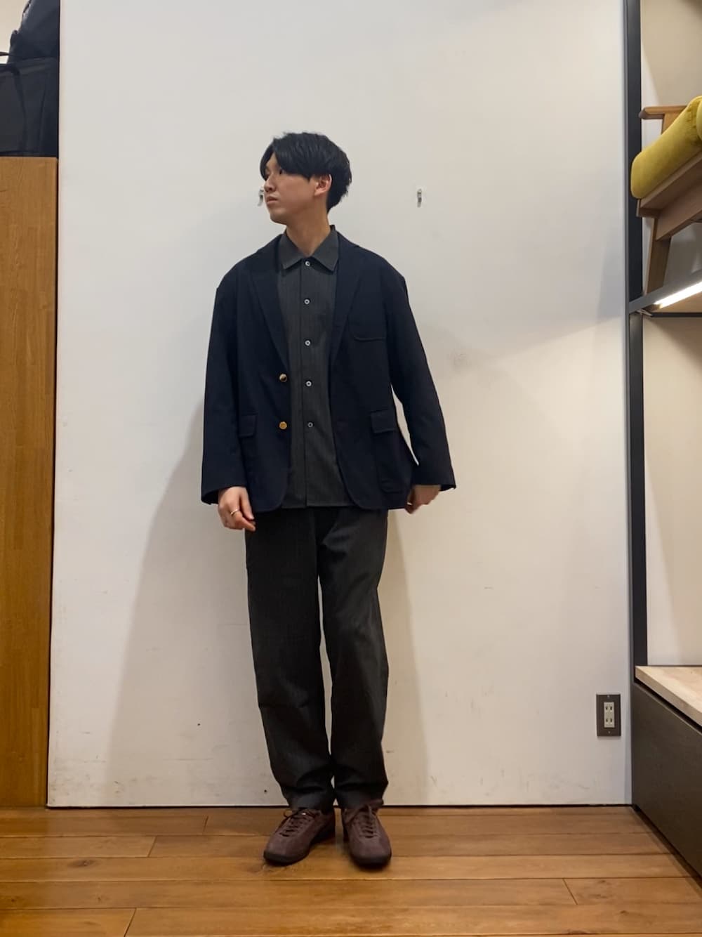 セットアップスタイルはもちろん、Tシャツやシャツ、スウェットなどトップスを選ばず、カジュアルからきれいめまで幅広いスタイリングに対応します。