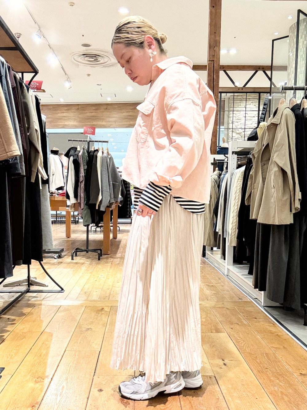 足元を選ばないしっかりとしたロング丈は、スニーカーからフラットシューズまで、その日の気分に合わせたスタイリングを幅広くお楽しみいただけます。
