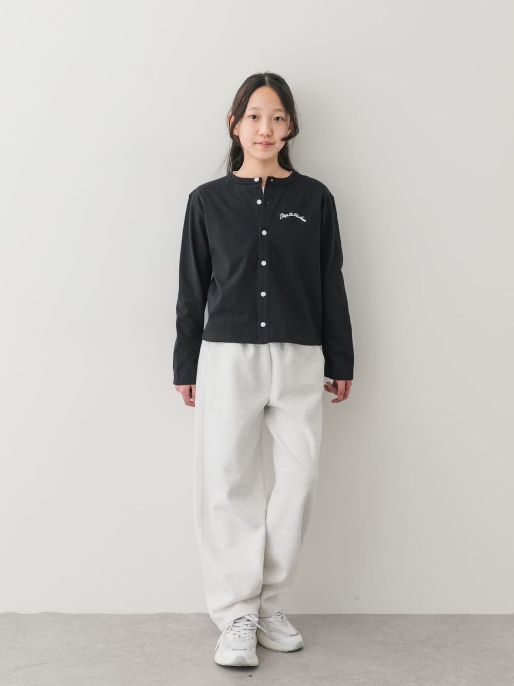 滑らかな肌触りときれいな発色が特徴のコットンコーマ天竺を使用したカットソーカーディガン。 毛羽立ちにくく柔らかく仕上げているため、動きやすさと着心地の良さを両立しました。 フロントの釦デザインと胸元の刺繍がさりげないアクセントになり、カジュアルすぎず少しきちんとした印象に。 Tシャツやワンピースの上に羽織るだけでこなれた印象に。通園・通学からお出かけまで幅広く活躍します。 季節の変わり目や寒暖差対策にもおすすめの1枚。使いやすいBLACKとトレンドカラーのBUTTERの2色展開です。