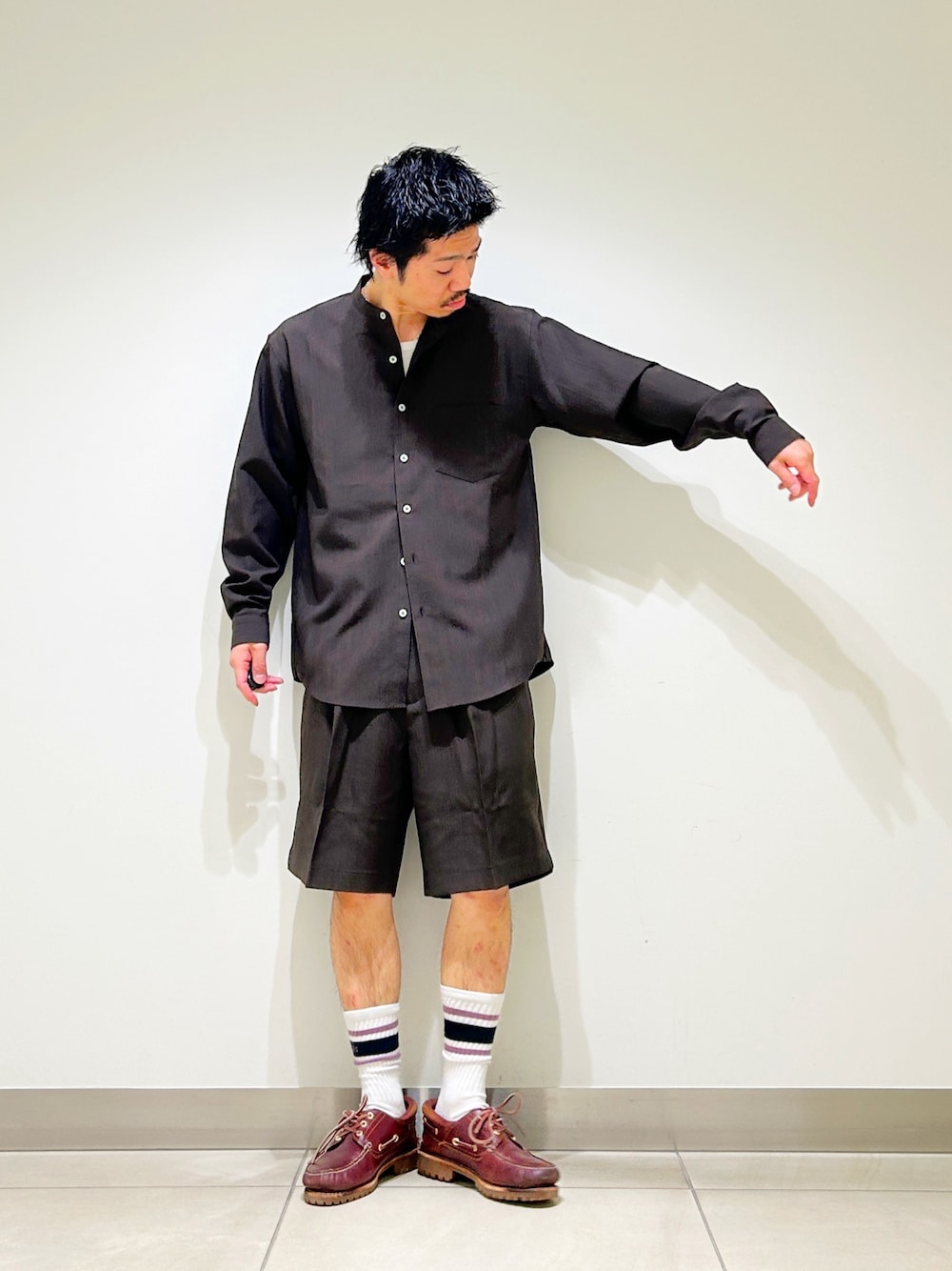 ・カジュアルになりがちなショーツながら、適度な光沢としっかりとした厚みがあるため、どこか落ち着いたきれいめな表情に。型崩れしにくいハリのある生地が、肌との間に風の通り道を作り、見た目以上の清涼感を実現しました。
