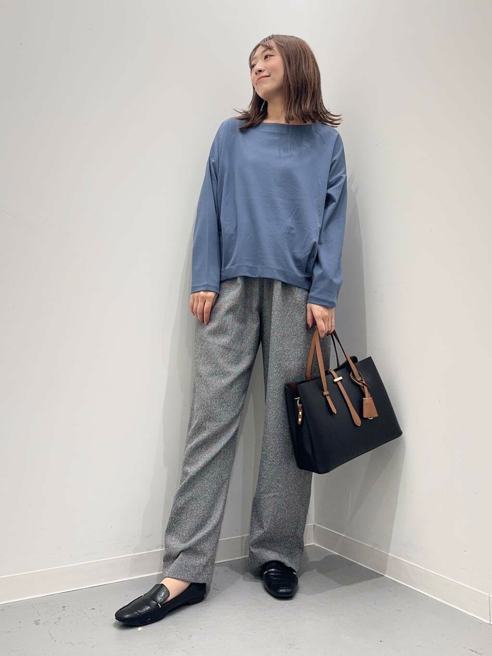 初秋見えするネップ入りのツィード生地を使用したイージーパンツをご用意しました。