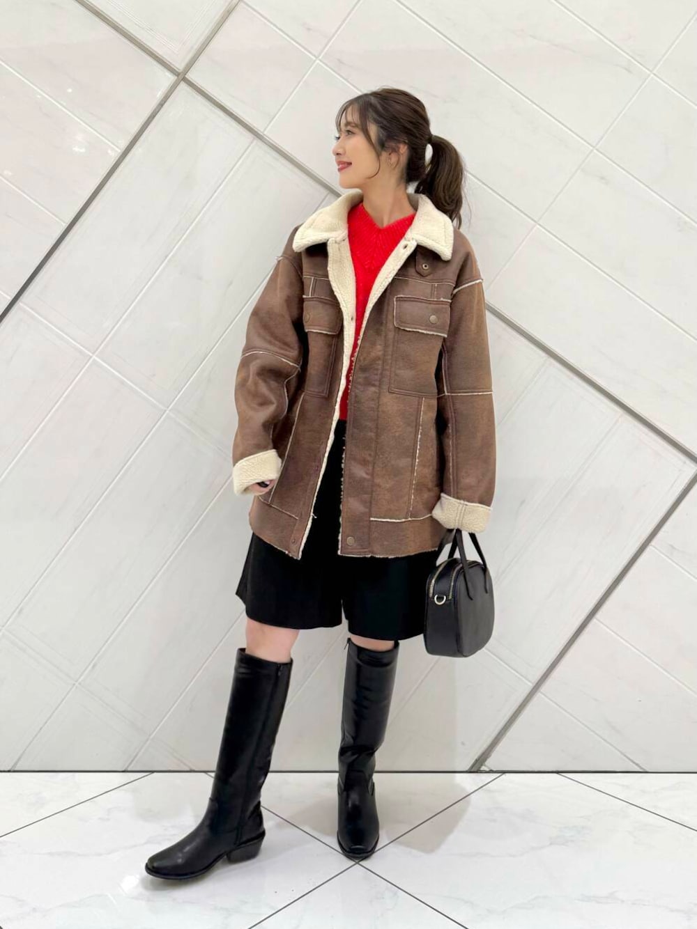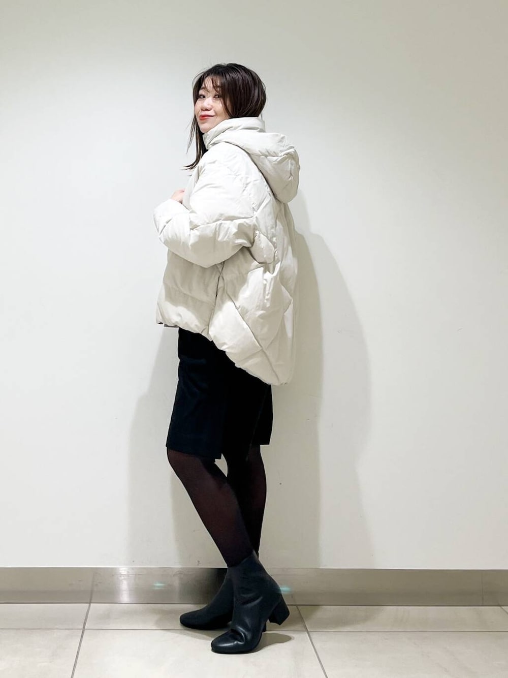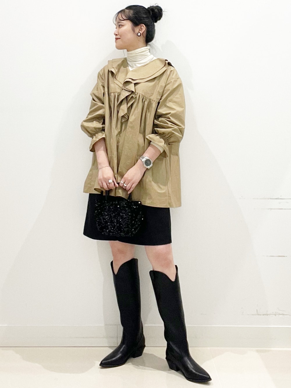 ロングブーツ、タイツにフラットシューズなどと相性の良い、短すぎない膝丈に設定しています。