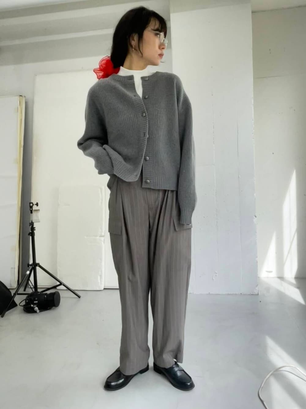 細めのピンストライプでどんなトップスにも合わせやすくシンプルなスタイルもにも映えるパンツ。
