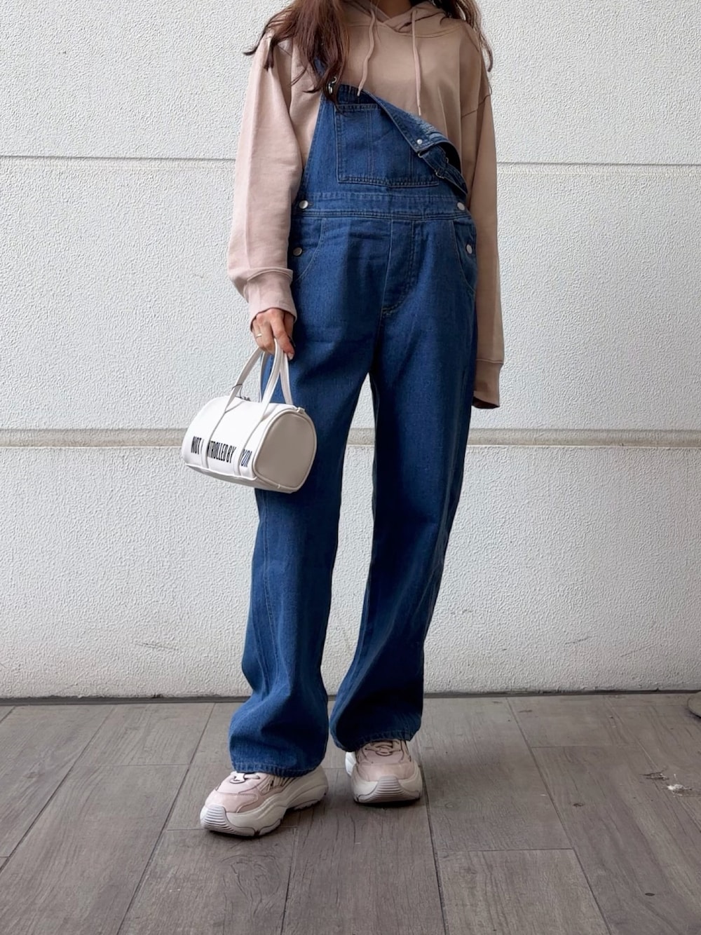 子供っぽくなりがちなサロペットは、大きすぎずスッキリとしたシルエットや長めのレングスで大人っぽく着ていただけます。