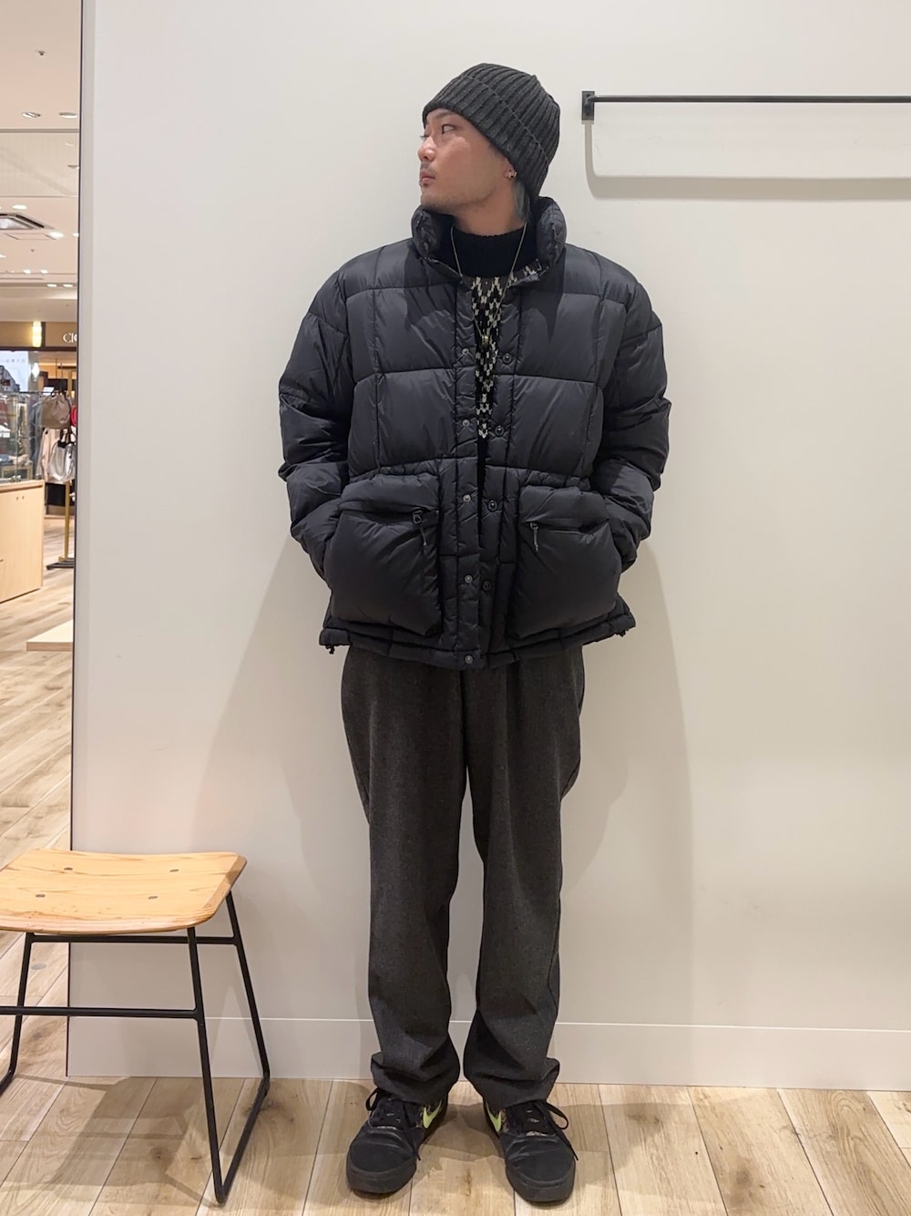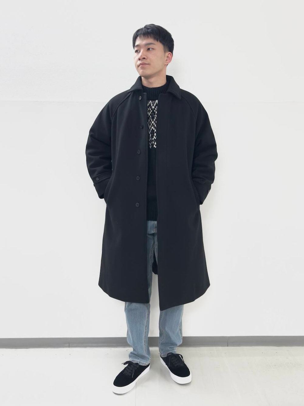 ・ハイネックとクルーネックの中間のような首元を採用しています。全体的にゆとりのあるシルエット
