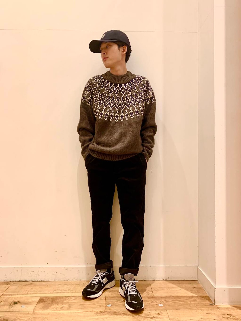 カジュアルなパンツ~きれいめなスラックスまでと幅広く合わせていただけます。カジュアルなアイテムと合わせてもニットの配色が大人な雰囲気のため幼くなりません。