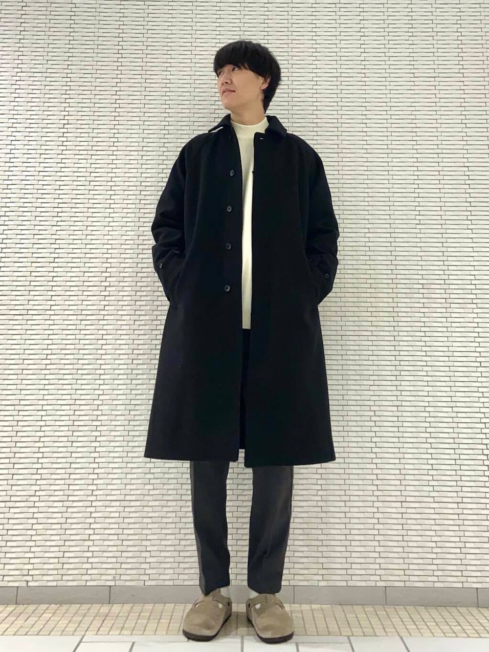クラシックなステンカラーデザインですが、カジュアルからきれいめまで幅広く合わせていただけます。