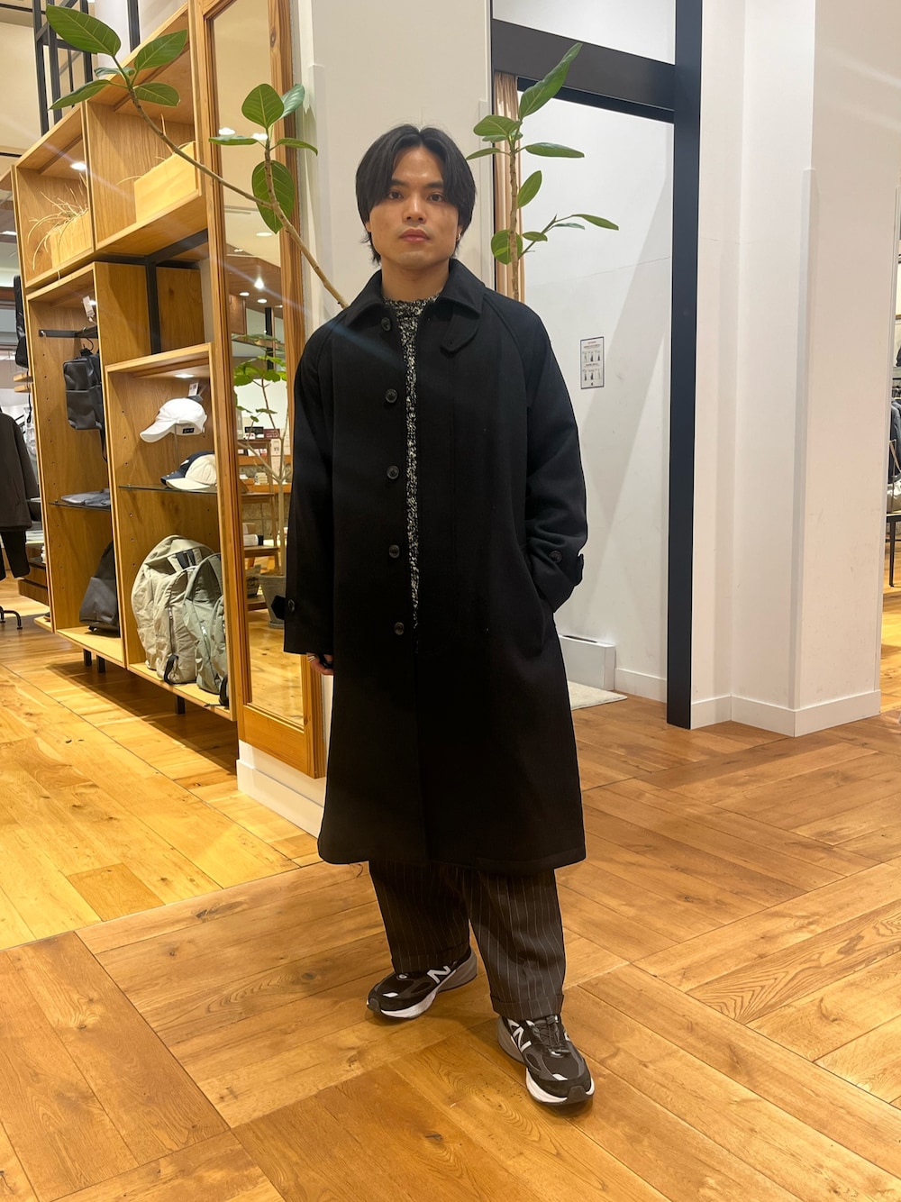 ウールのふくらみと温かみのあるメルトン生地を使用したロングコート