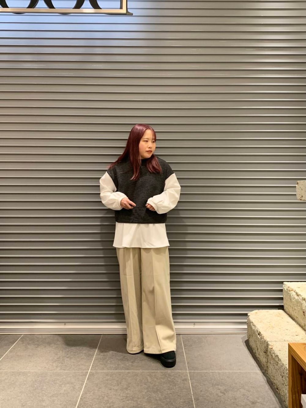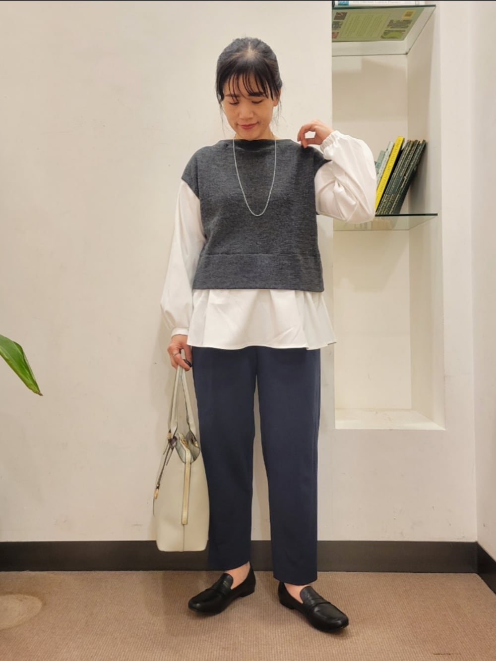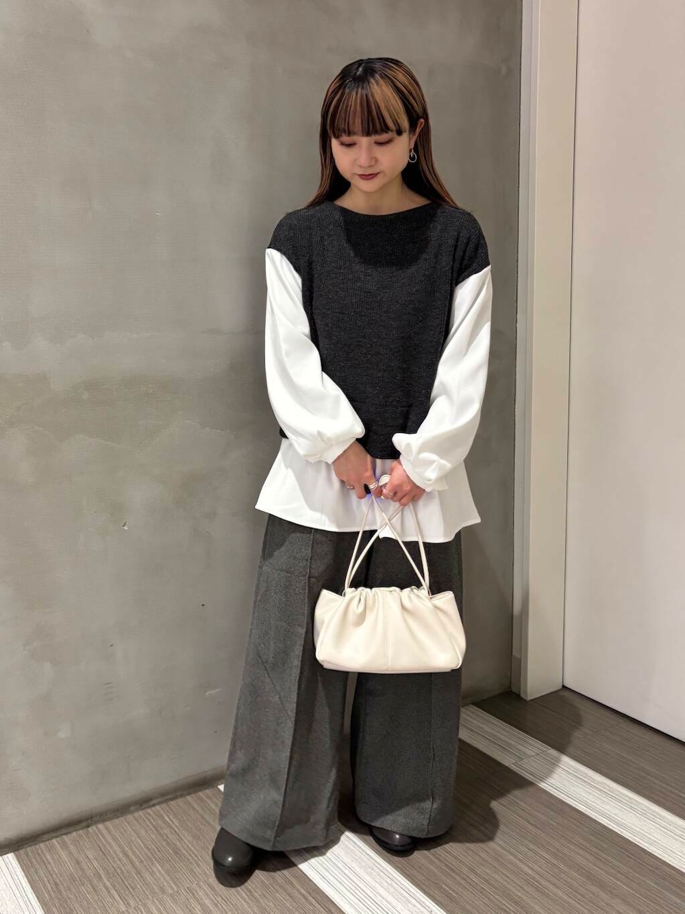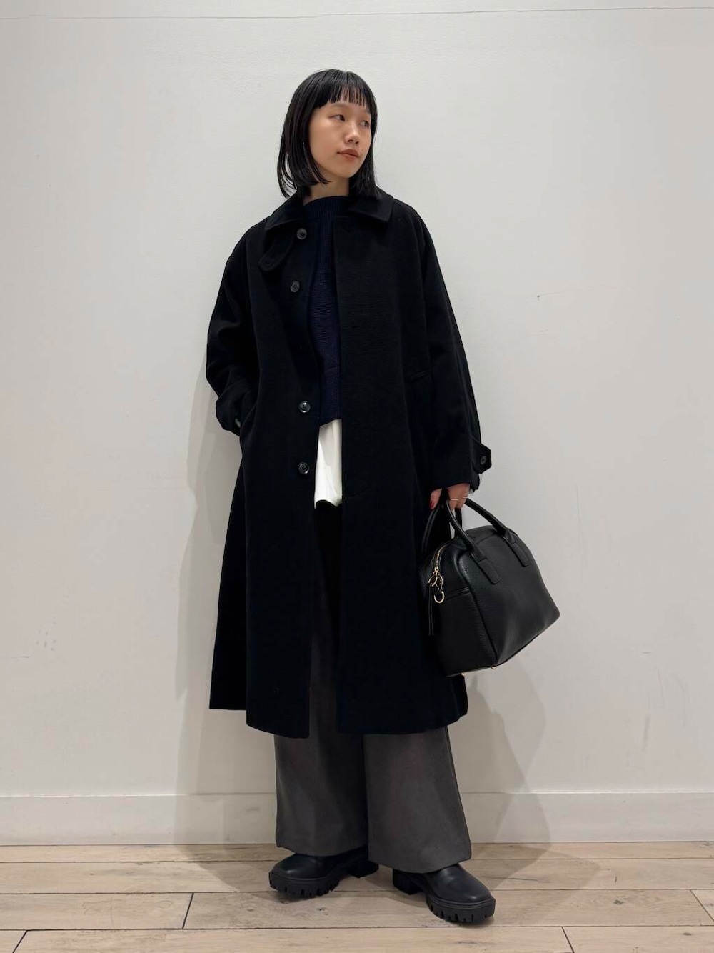 襟元は少し立たせたモックネックの仕様で、ニュアンス感のある印象に仕上げました。