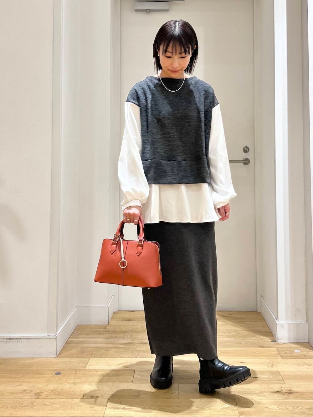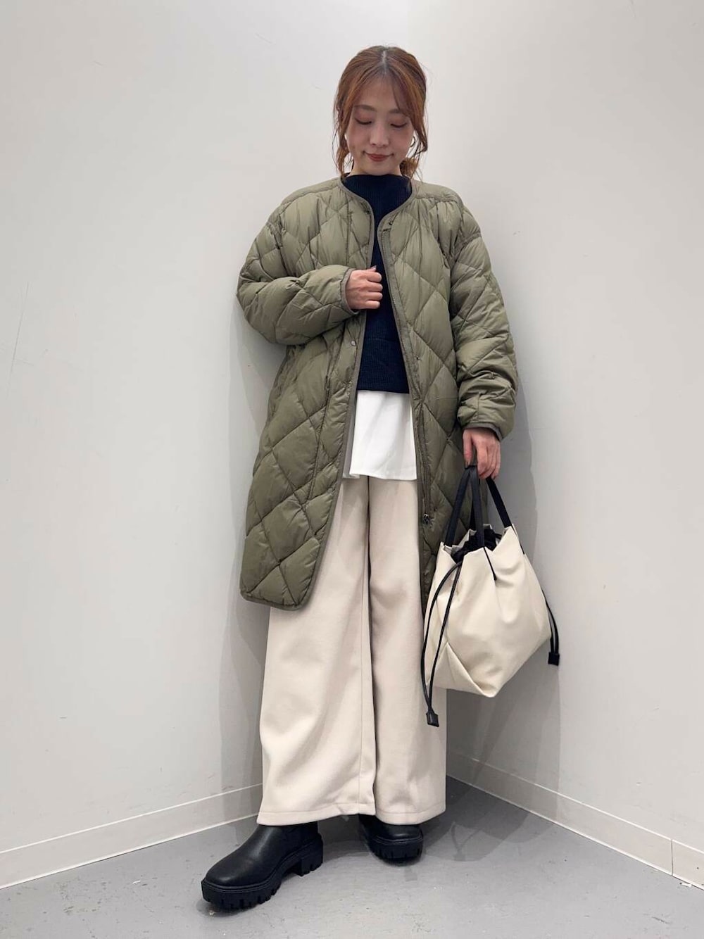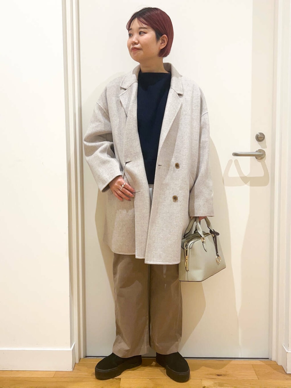 襟元は少し立たせたモックネックの仕様で、ニュアンス感のある印象に仕上げました。